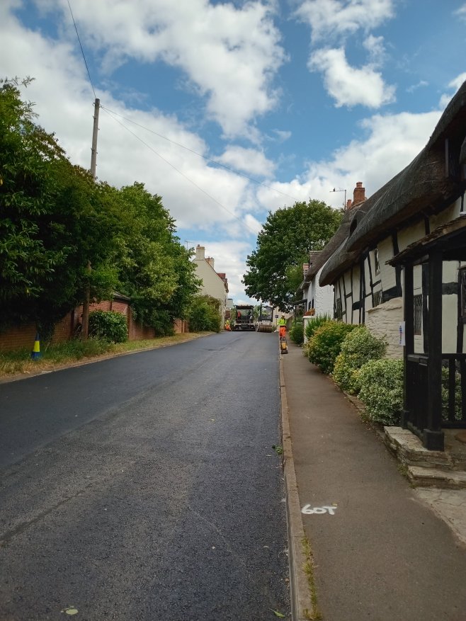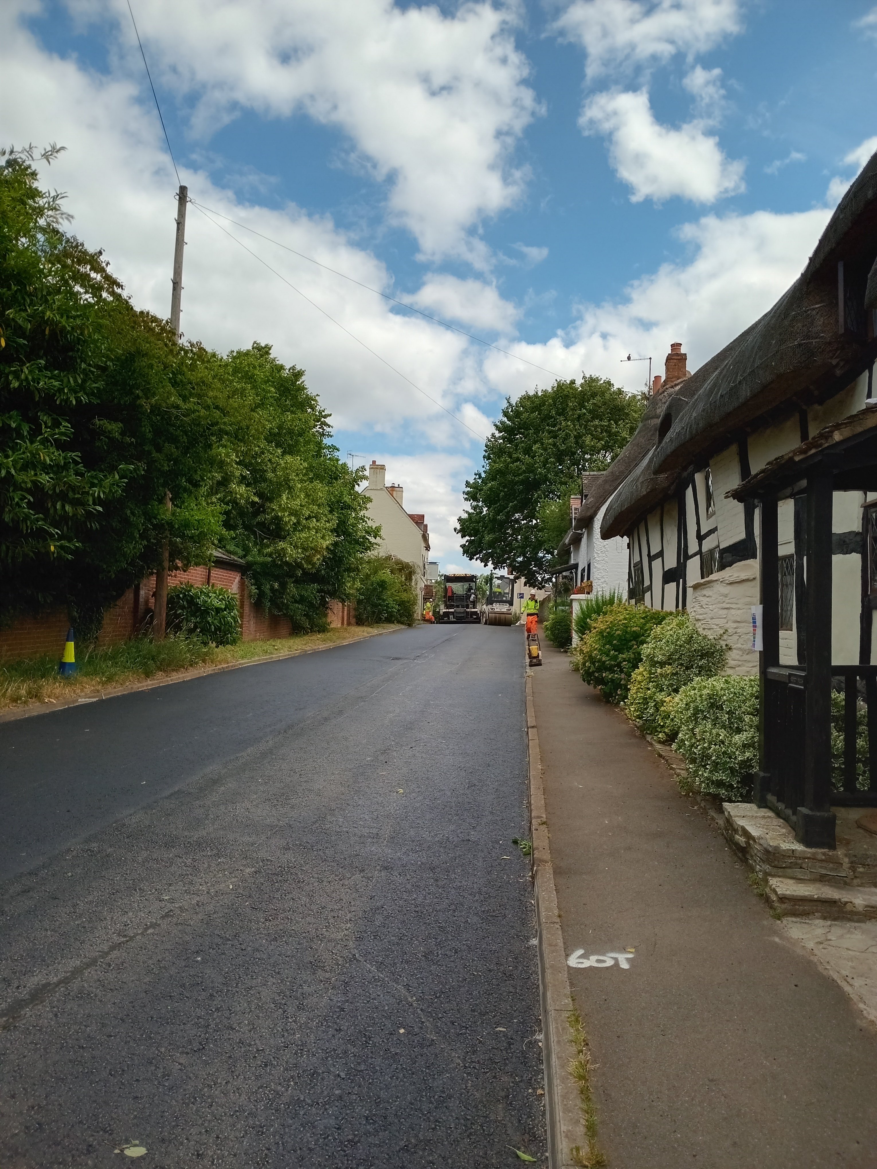 On 25/26th June 2025 both Stratford Road and Church Street were scraped and resurfaced. For many years the road surfaces of both these thoroughfares had been in a poor state of condition owing to time and various utility companies who had cut into the surface. With the building of the old bypass in 1976 the road and street ceased to be a main road, which allowed local children to play in the street and remove the cats eye to be used as marbles! At Crooked Walls we were fascinated by the spectacle of the hard-working surfacing team as they did their job with their huge machines. The resurfacing made us think when it had been surfaced prior to 2025, how old was the surface?