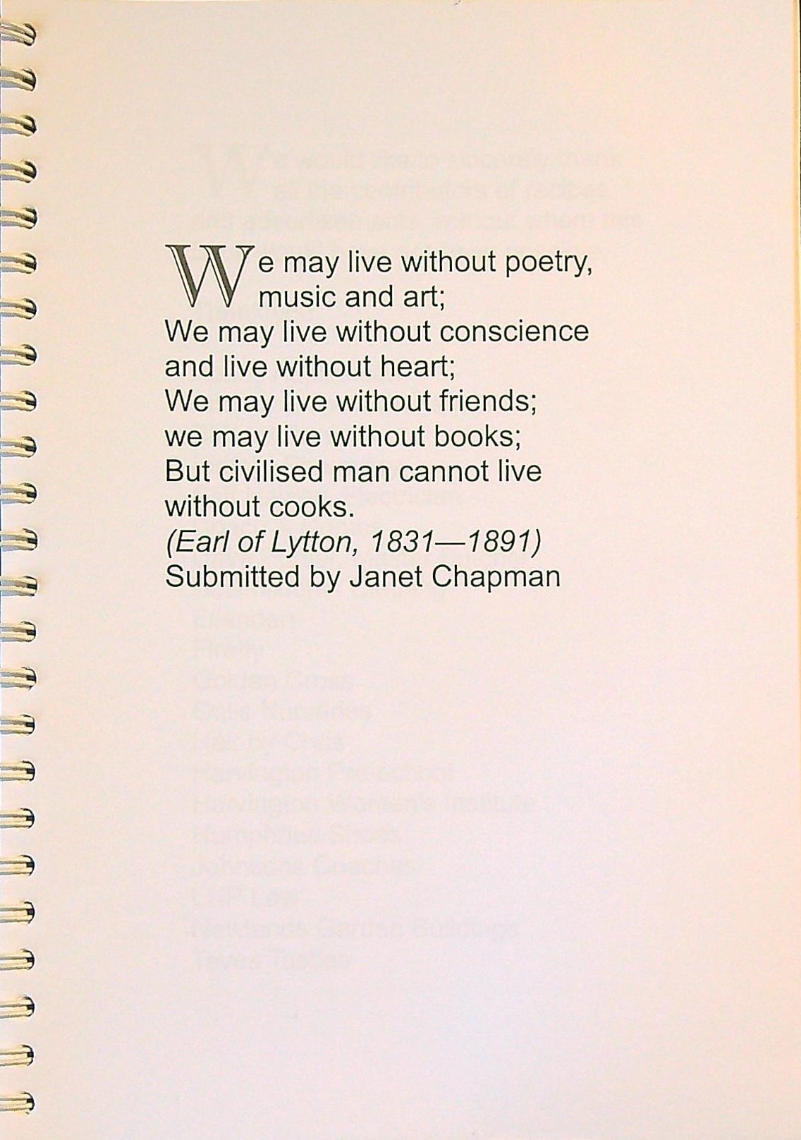 This hundred-page book of recipes was produced to raise funds for the refurbishment of the Village hall. One of quaint aspects is the names of those who contributed the recipes, some of whom have sadly passed away.