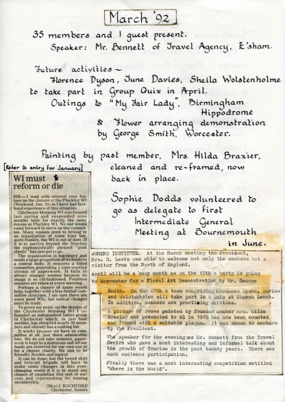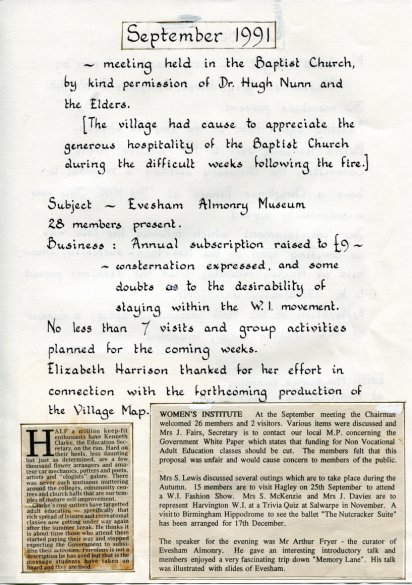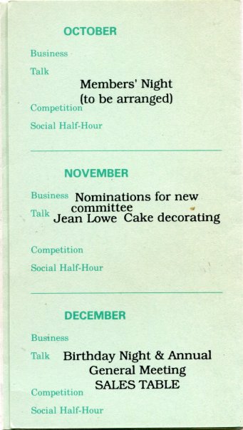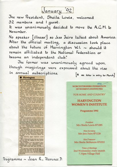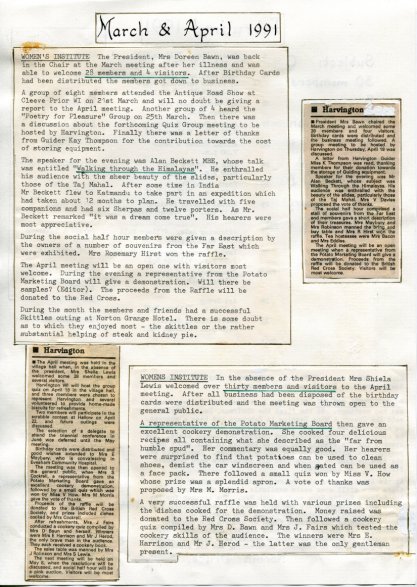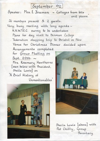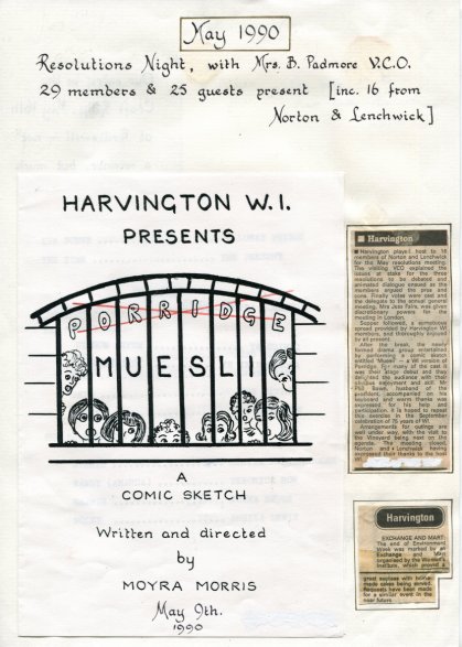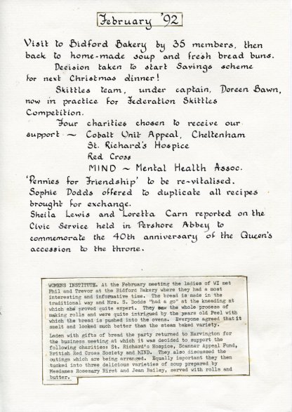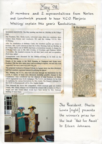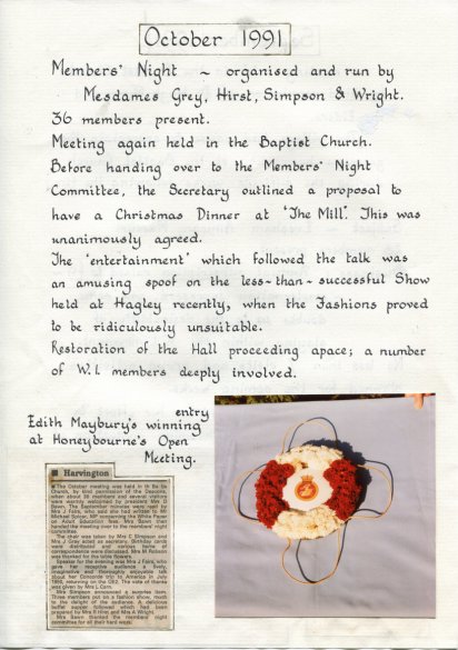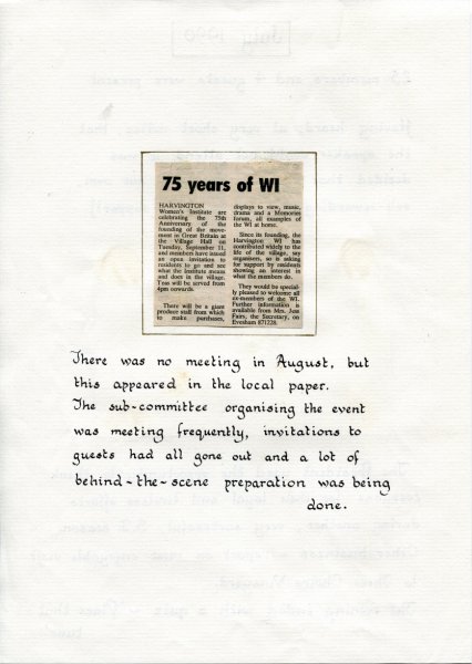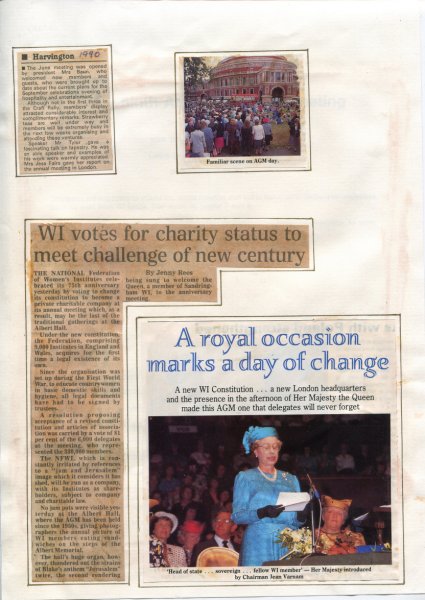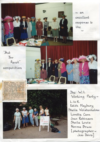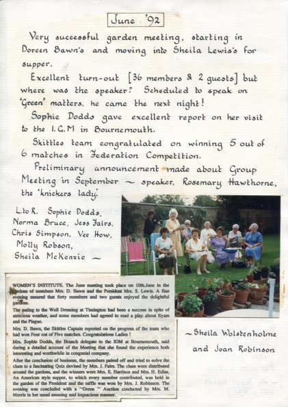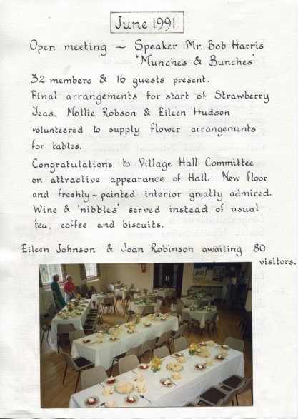 This scrapbook was maintained by a member of the WI, Mrs Doreen Baun. She informed me of its existance and kindly allowed me to copy it and be published on this website.