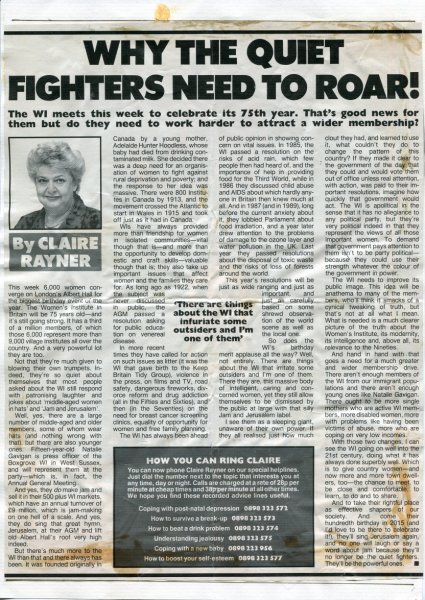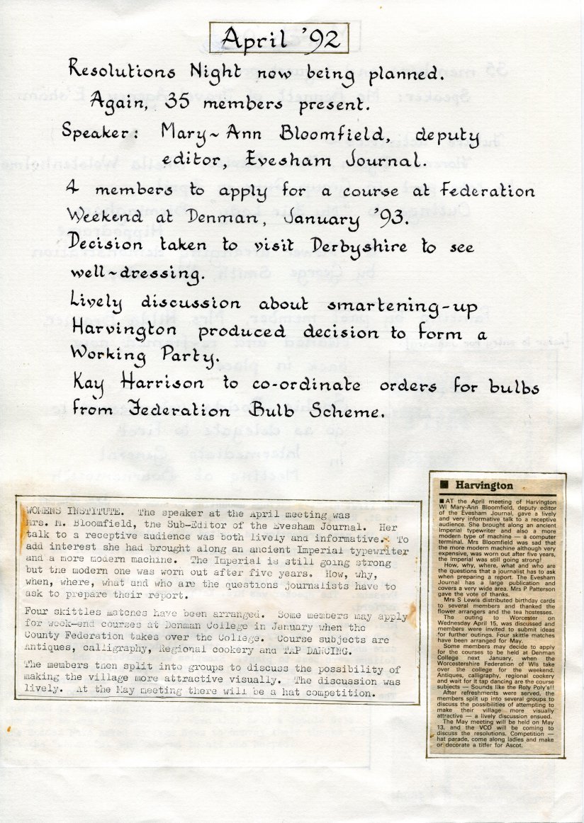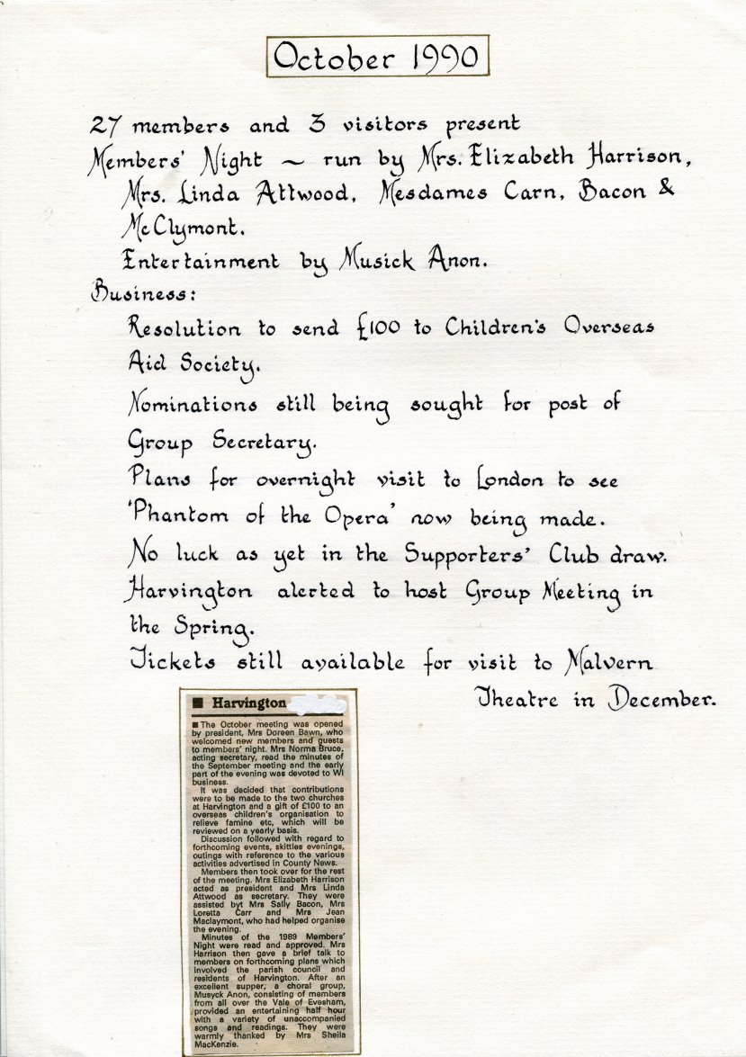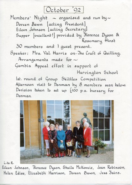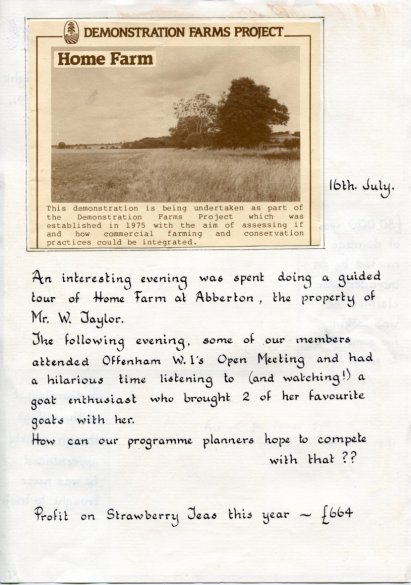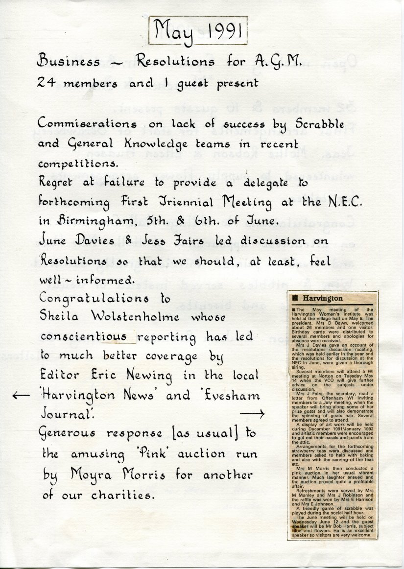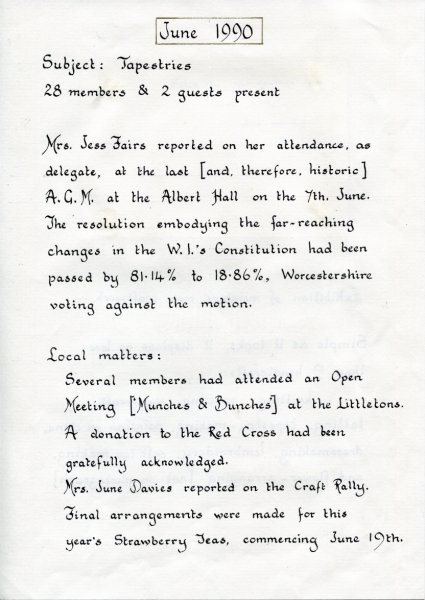 This scrapbook was maintained by a member of the WI, Mrs Doreen Baun. She informed me of its existance and kindly allowed me to copy it and be published on this website.