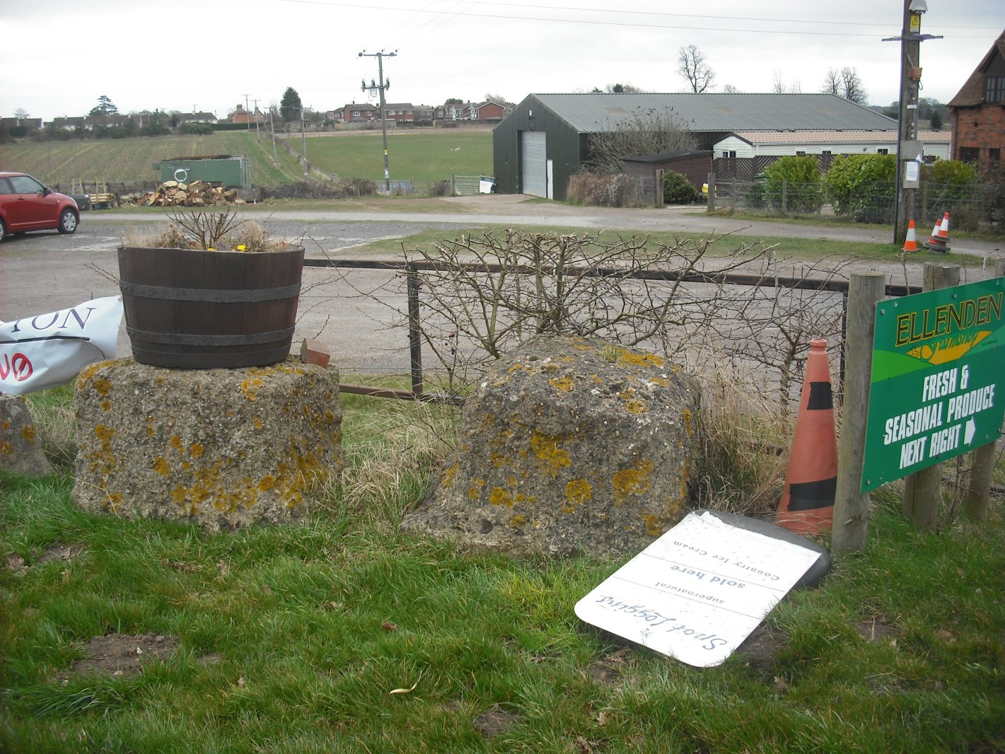 There are at least four large concrete bollards surviving from WW2. They were constructed during the war as part of Harvington's war effort. For lifting purposes, each had an iron lifting ring set into the top. The idea was to haul them across the approach roads in an attempt to slow down the advancing Germans.