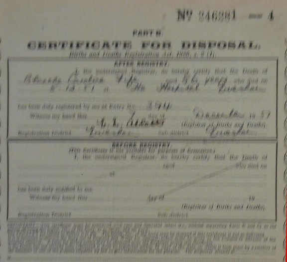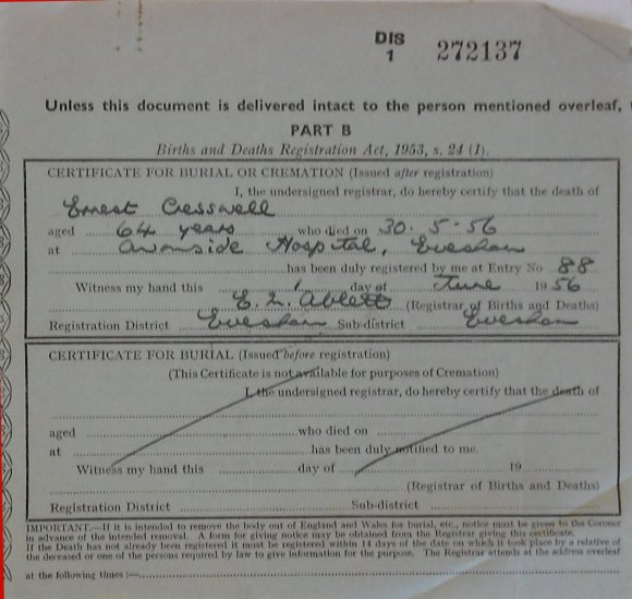 1 June 1956 Ernest Cresswell Plot 541 Burial Ground