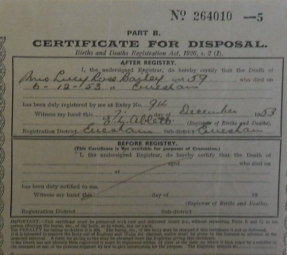 9 December 1953 Mrs Lucy Rose Bailey Plot 418 Burial Ground