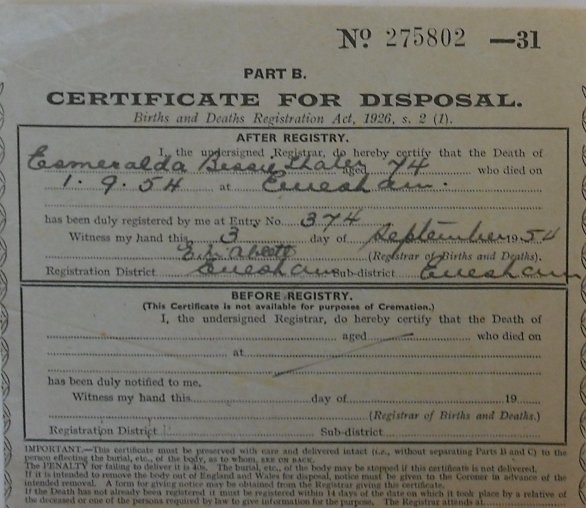 3 September 1954 Esmeralda Bessy Shailer Plot 110 Burial Ground