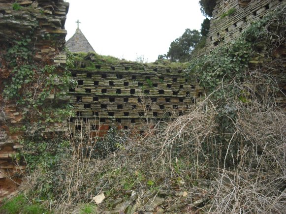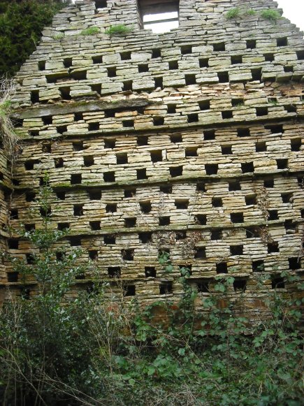 Dovecotes are also known as columbaria or culverhouses, 'culver' being the Anglo-Saxon for pigeon. Apparently the surname Culverhouse originates from someone who tended a dovecote. Columbaria, although now associated with places for cinerary urns in niches, it used to refer to niches or roosting holes for pigeons - Latin columba meaning dove.