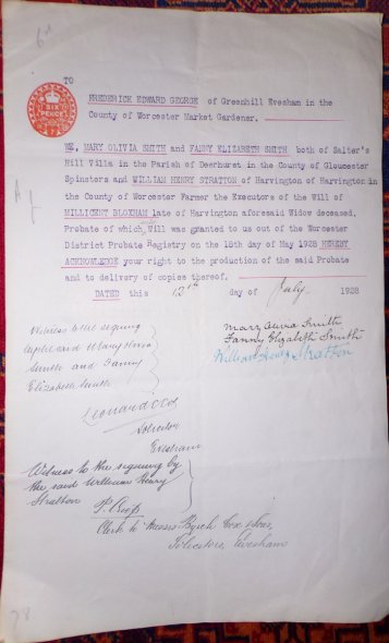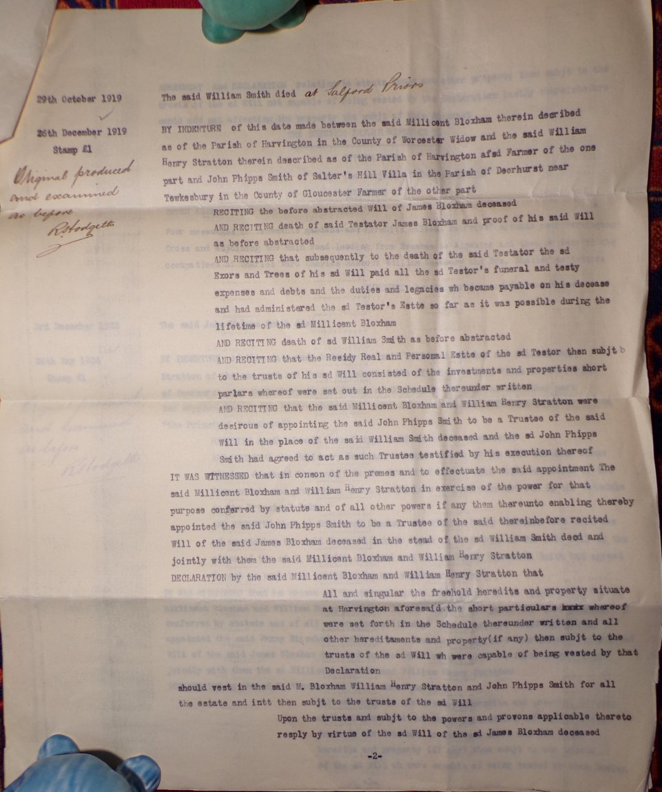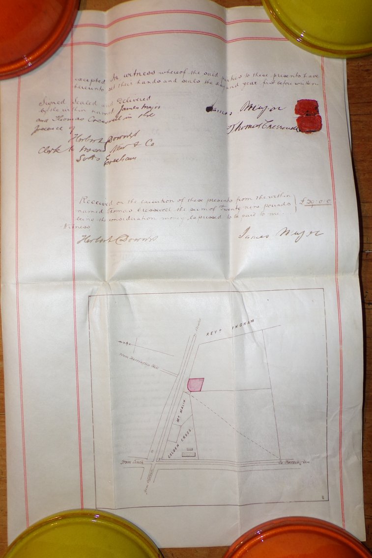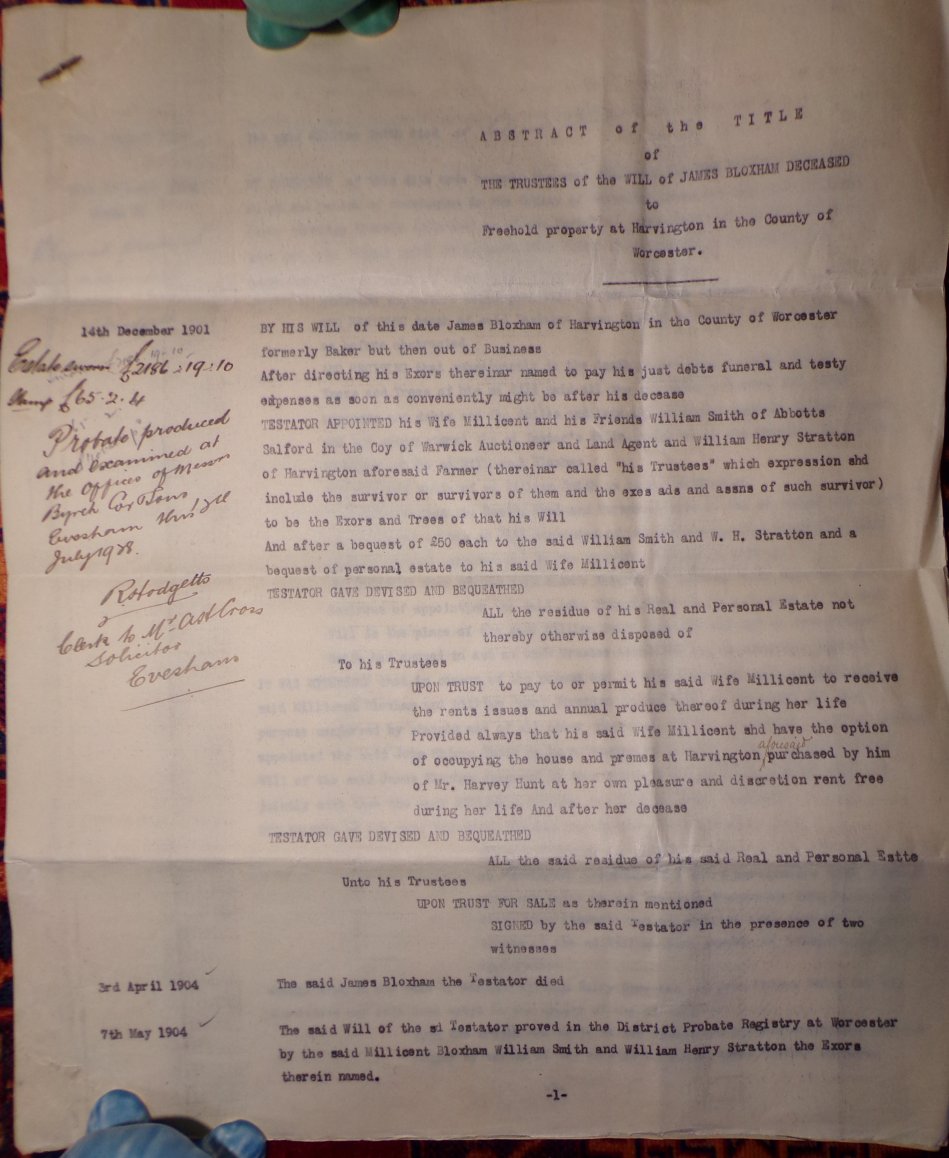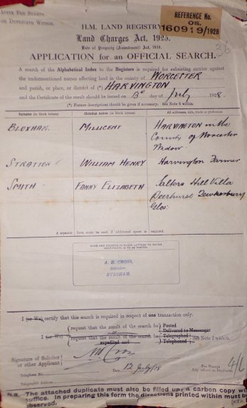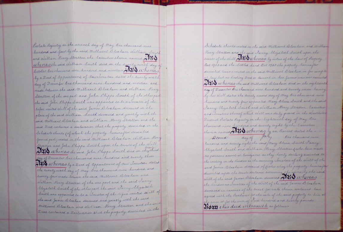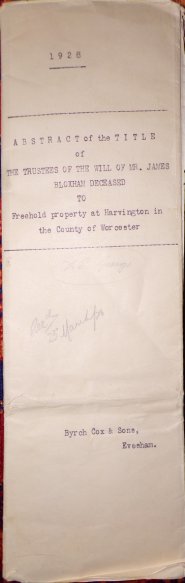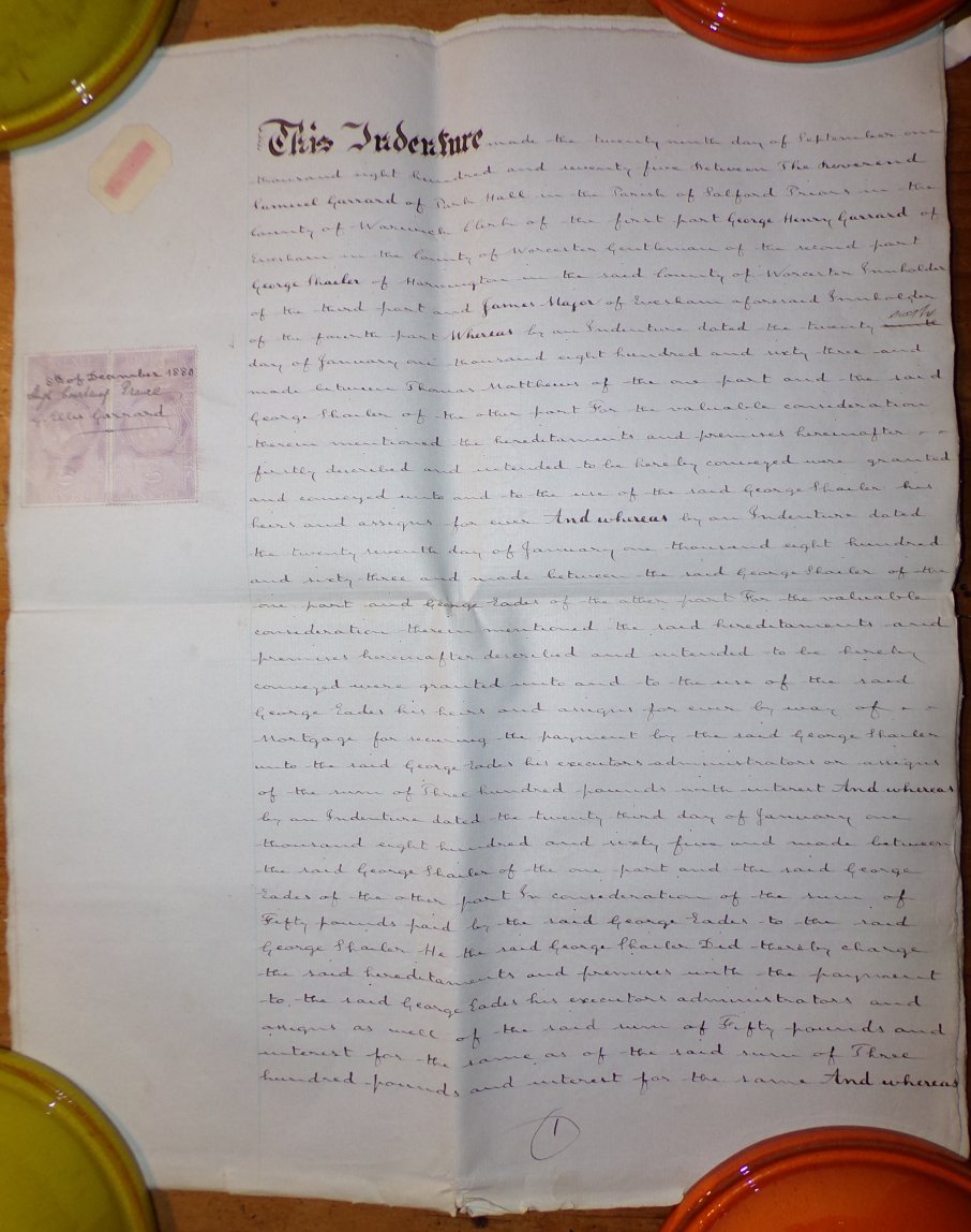 The earliest document (No.1) within the bundle of Deeds is dated 29th September 1876 and is a conveyance relating to the Golden Cross pub, two attached cottages (adjacent to the Golden Cross and now one) and, importantly, a piece of land on the Alcester. It is upon this 'piece of land' that the four Fairview Cottages were eventually built. Then follows forty-four documents which give a detailed history of the cottages, later to become two. The present owners, the Haw's, purchased number four (three and four) in 1995. The present owners Alex and Irene Haw have kindly allowed access to this bundle of deeds.