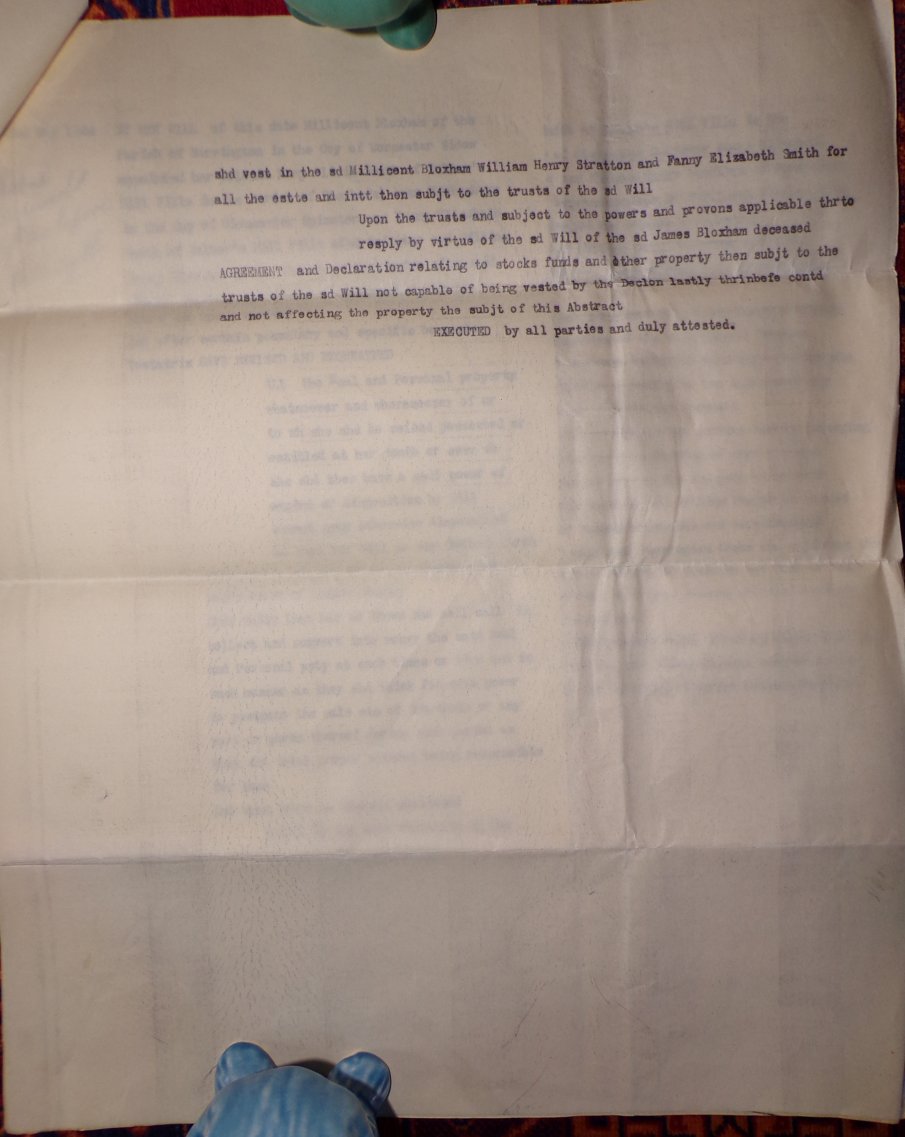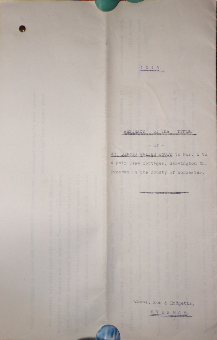 Fairview Deeds 026:         Four attached and folded sheets of an abstract of title dated June 1948.