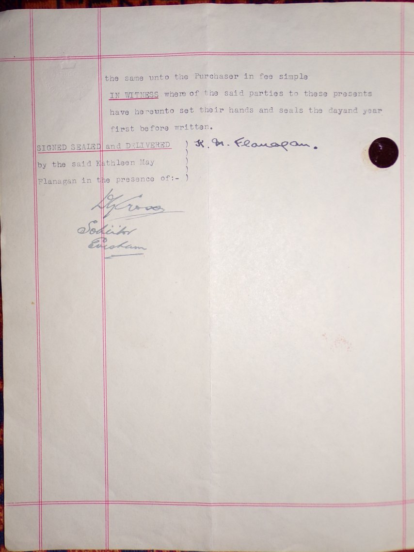 Fairview Deeds 025:         Single folded sheet of a Conveyance dated 12th April 1948.