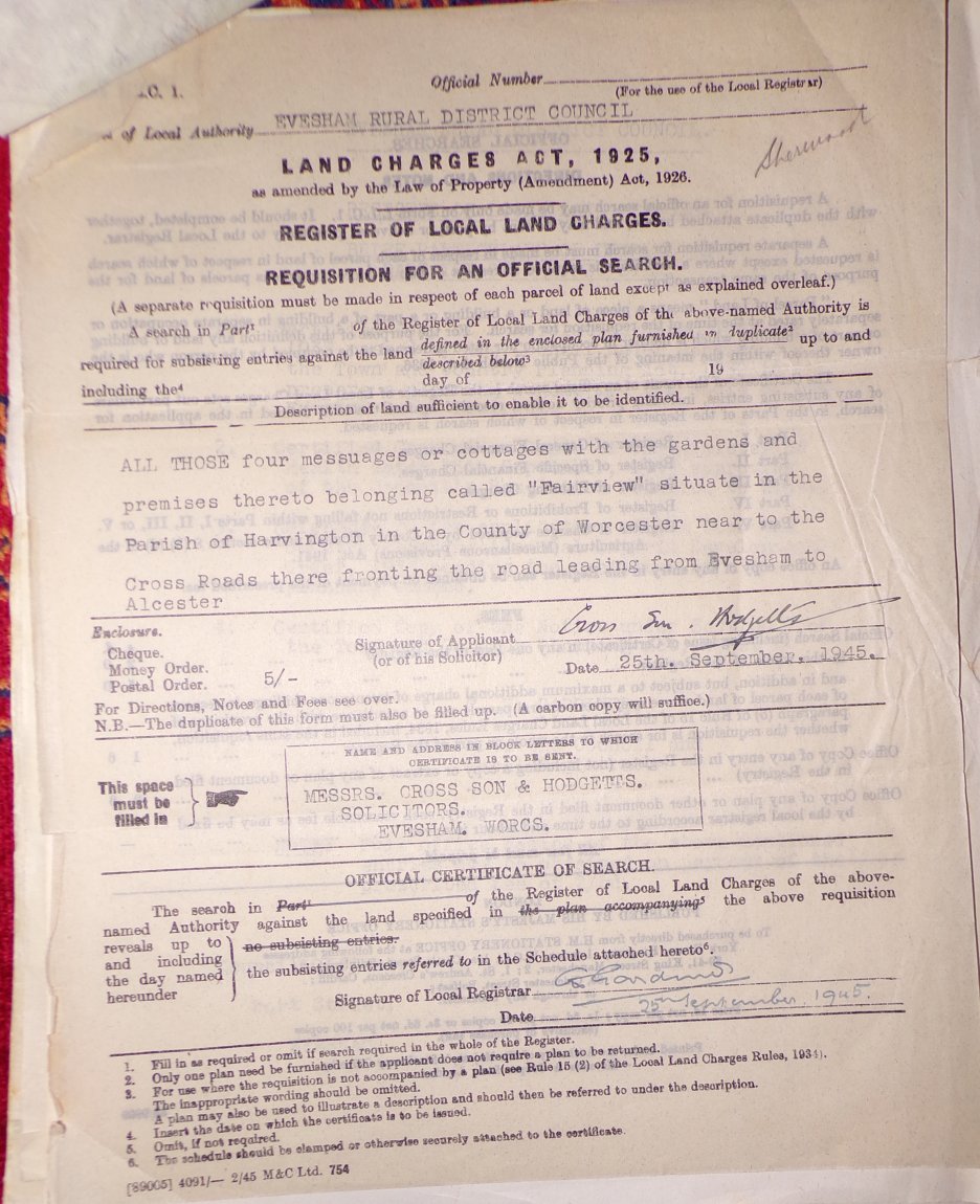 Fairview Deeds 014:         Miscellaneous collection of land charges documents etc. dated 1935, 1942, 1947, 1948.