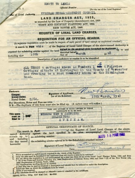 Fairview Deeds 020:         Foolscap page of a land charge dated 18th March 1948.