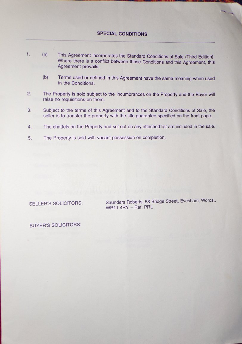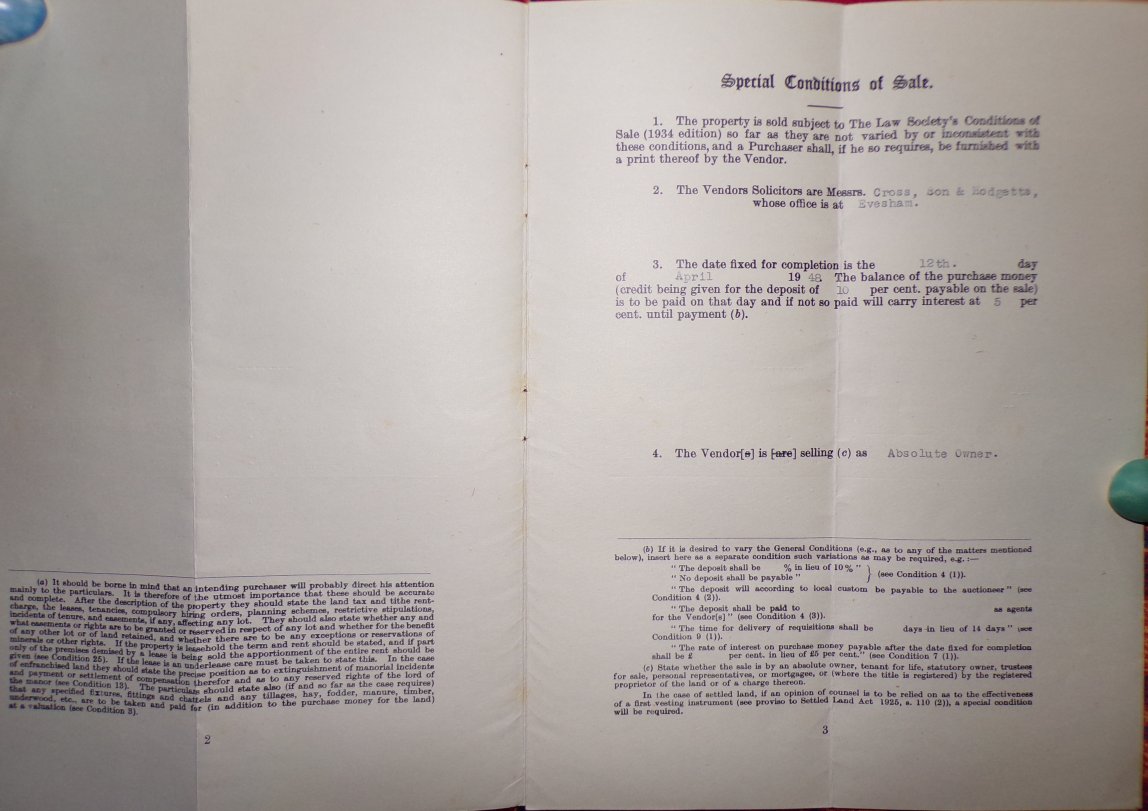 Fairview Deeds 022:         Two attached folded sheets of a "Particular, Special Conditions and Contract for Sale dated 27th March 1948.