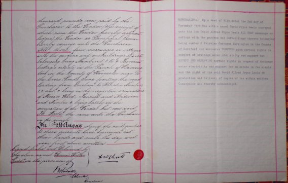 Fairview Deeds 016:         Folded sheet of a Conveyance dated 29th September 1945.