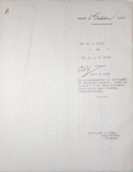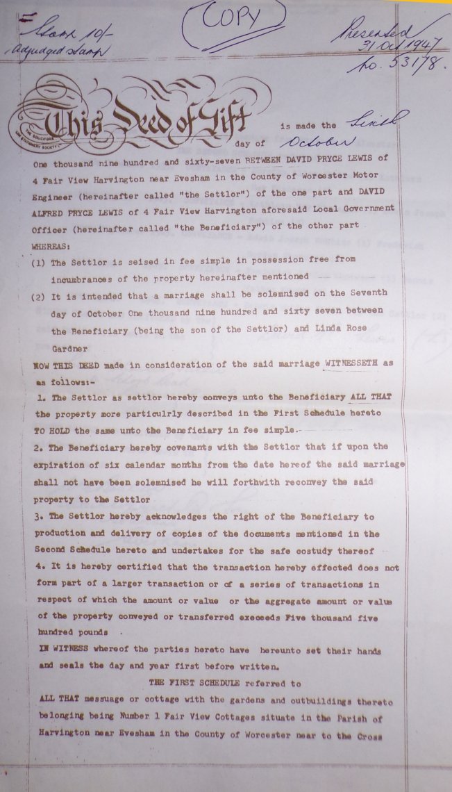• Fairview Deeds 027: dated 1967 - Copy of a Deed of Gift.