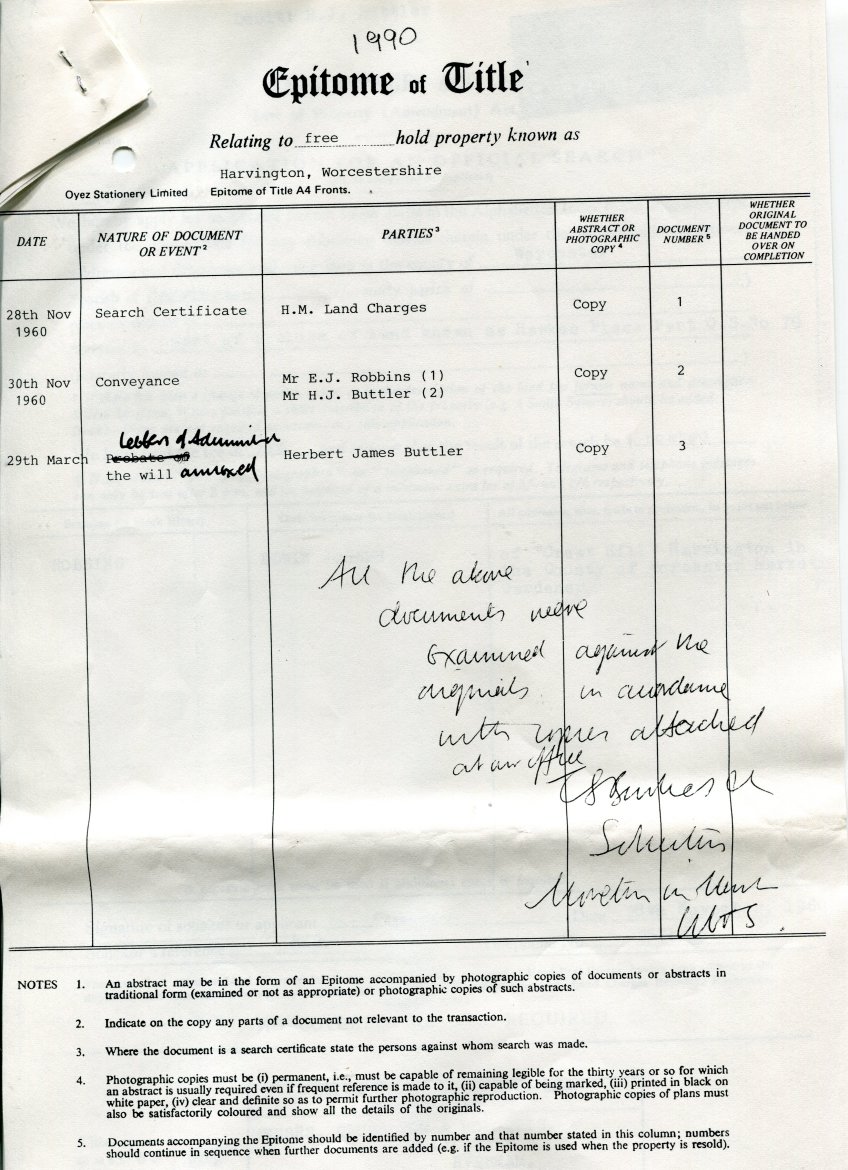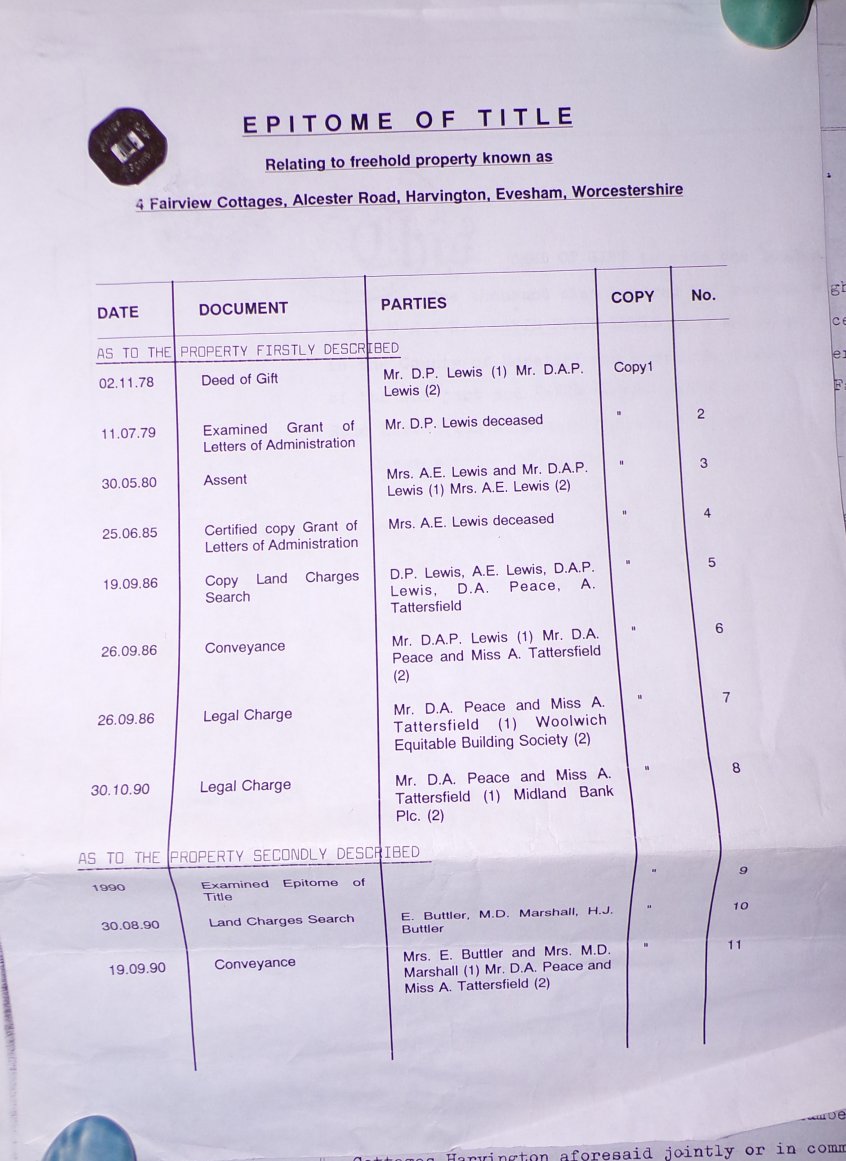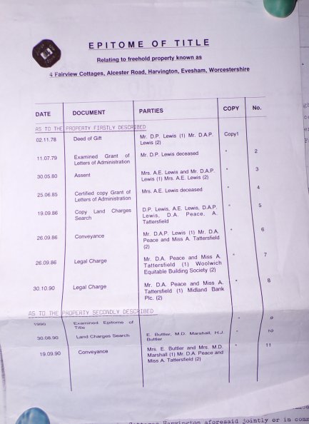 Fairview Deeds 040:         Bundle of nine sheets, all copies, some double sided, of an Epitome of Title date 29th March 1990.