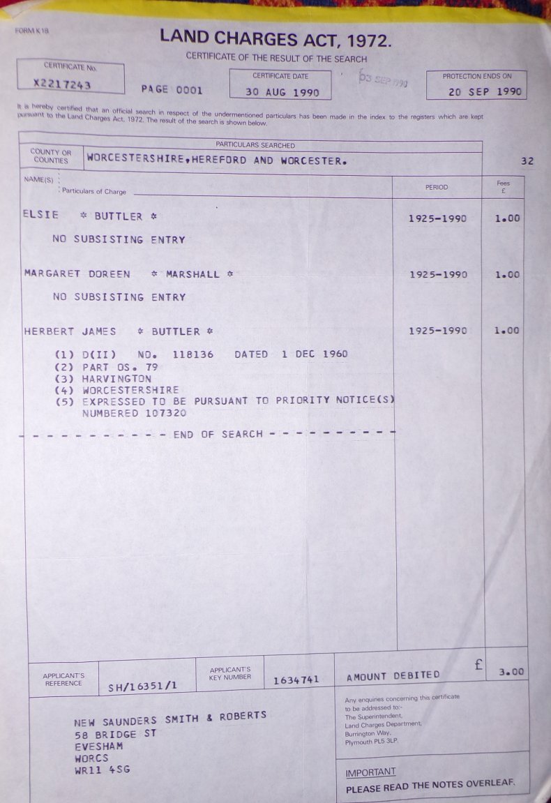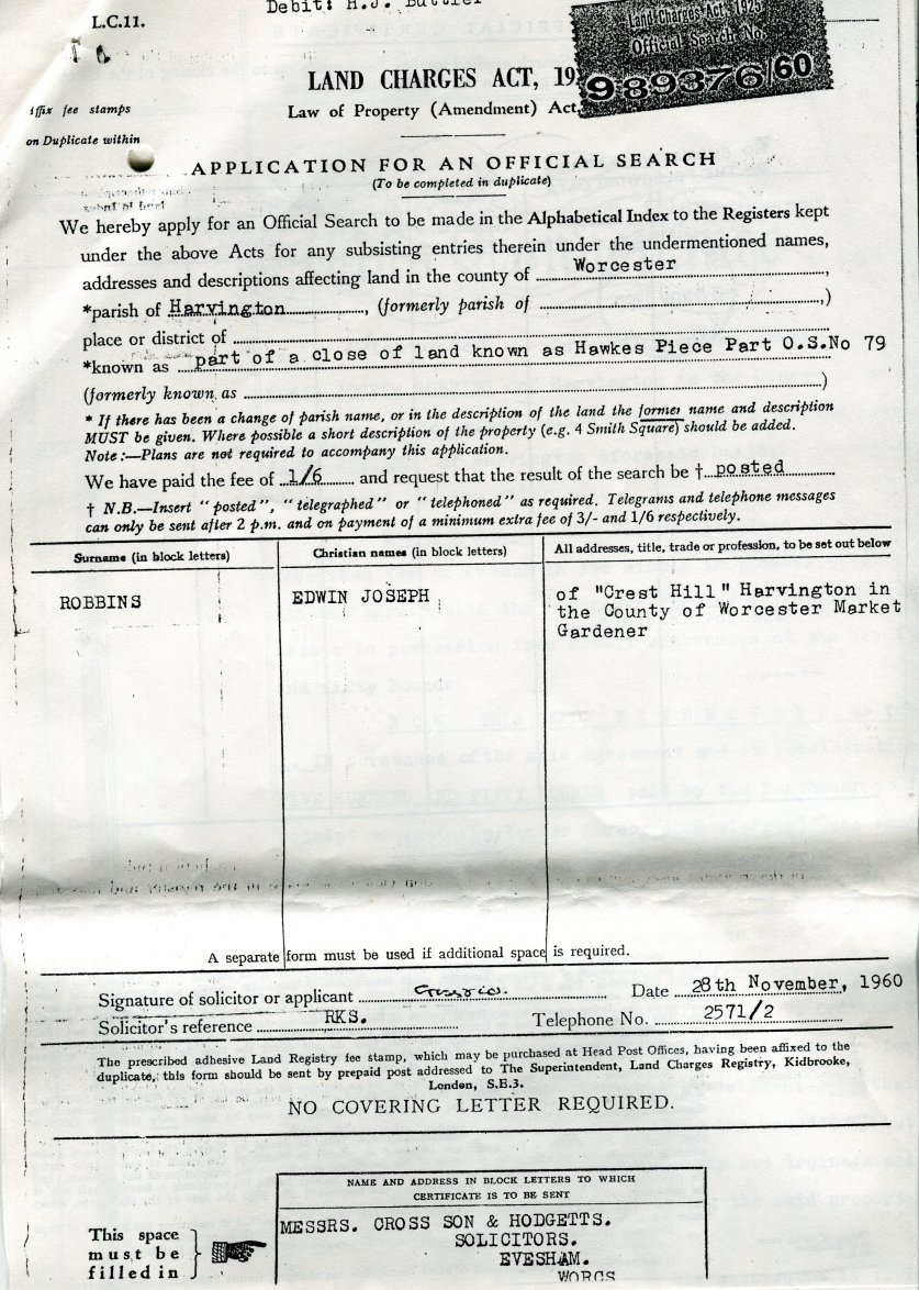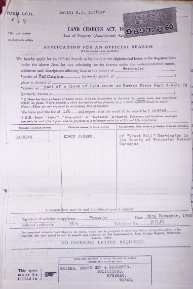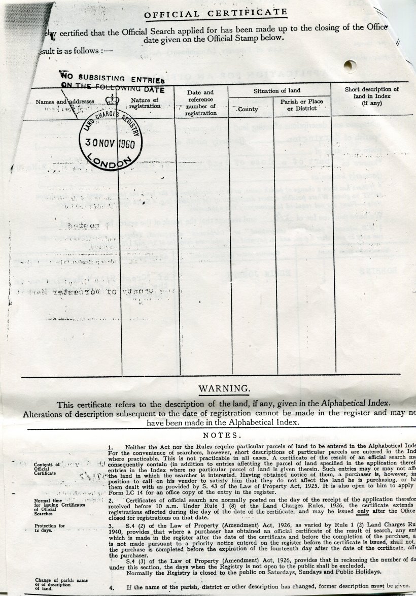 2. 28 November 1960 - Land charge - two sides of one sheet