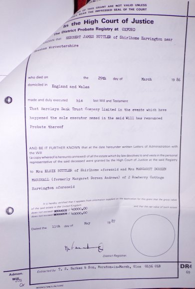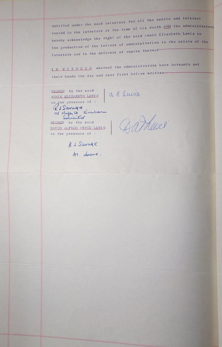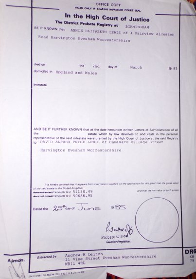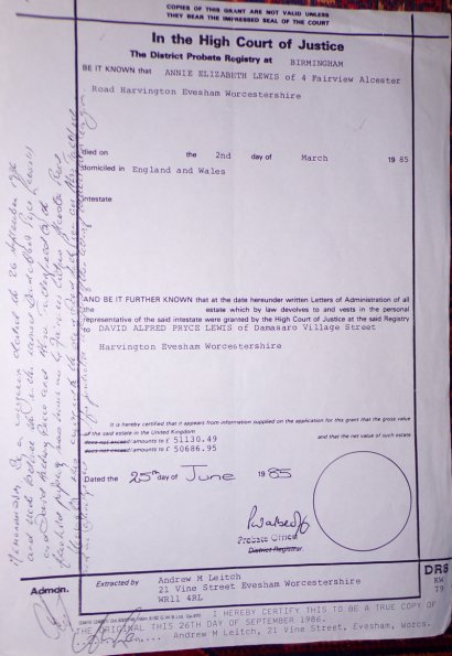 Fairview Deeds 033:         Probate dated 25th June 1985, this is a copy of the previous document but with added information.