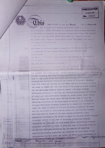 7. 2 November 1978 - Deed of Gift - four sides on two sheets