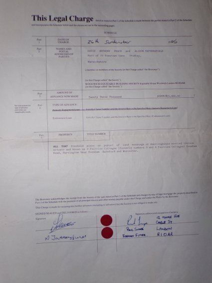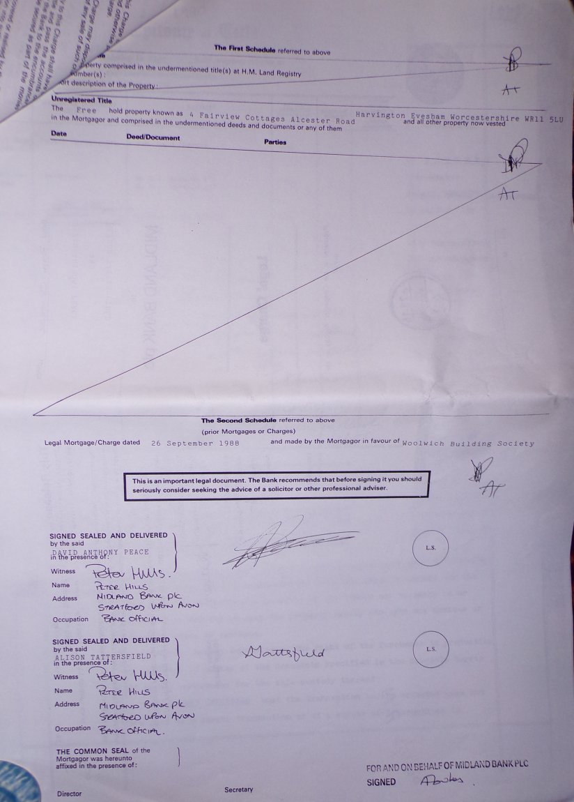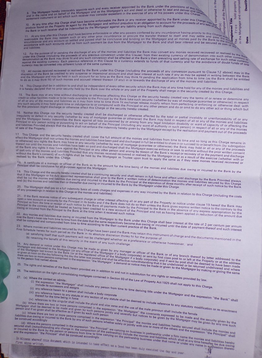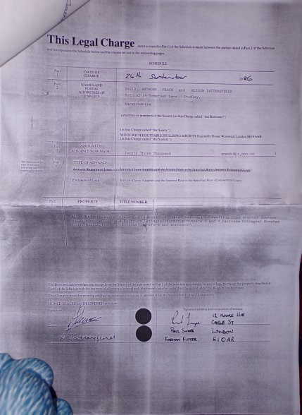 Fairview Deeds 035:         Large folded sheet of a Legal charge document dated 26th September 1986.