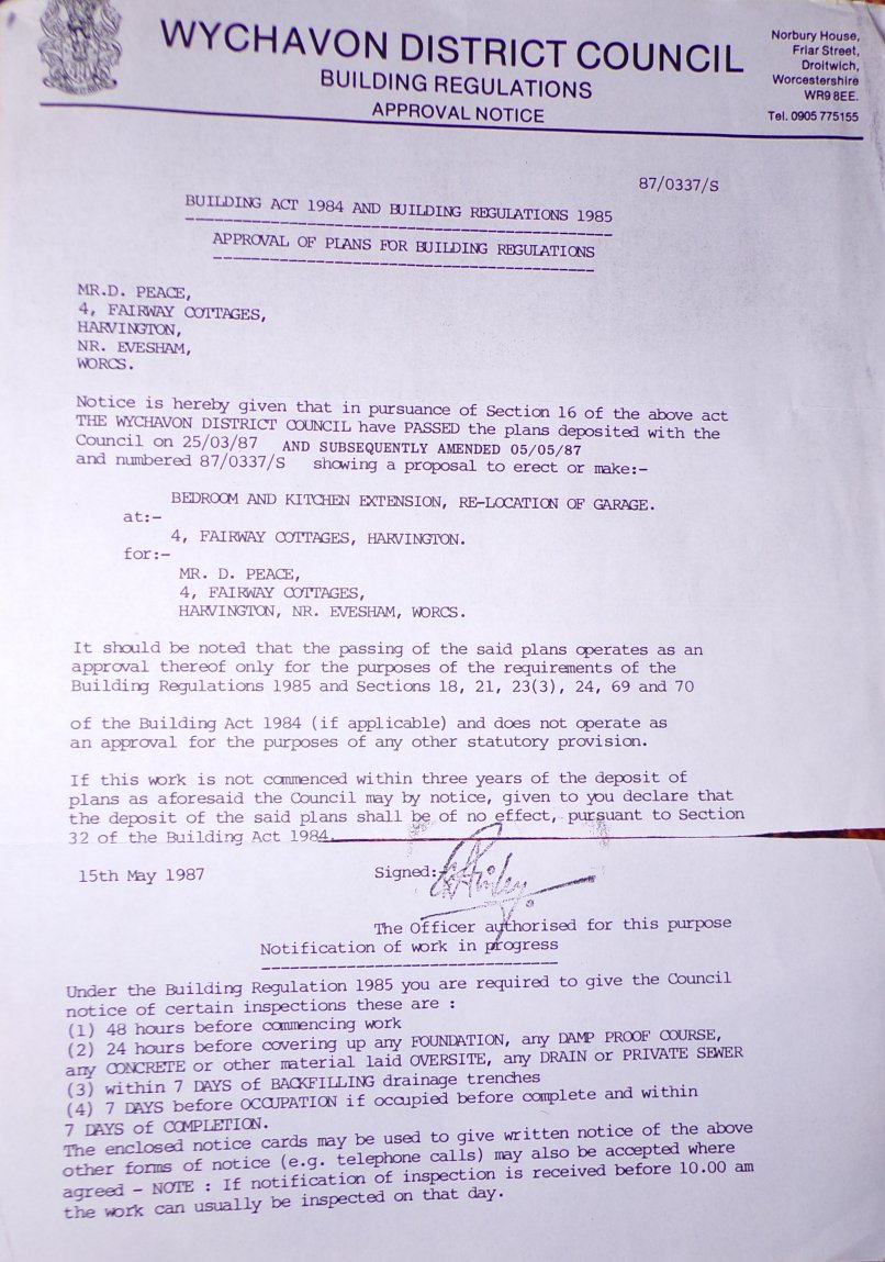 Fairview Deeds 038:         Planning permission dated 25th March 1987.