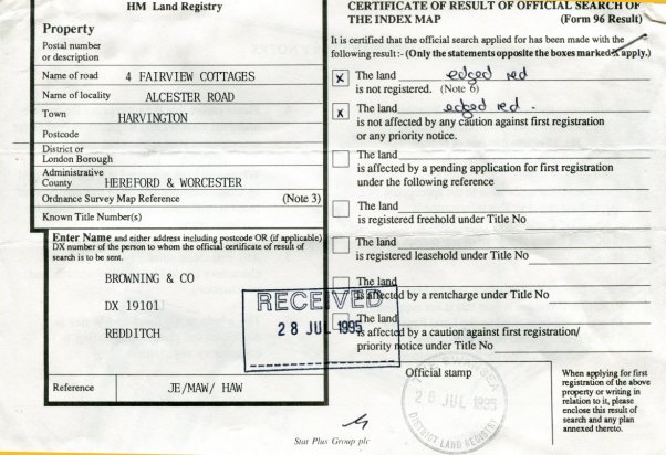 Fairview Deeds 043:         Land Registry document dated 28th July 1995.