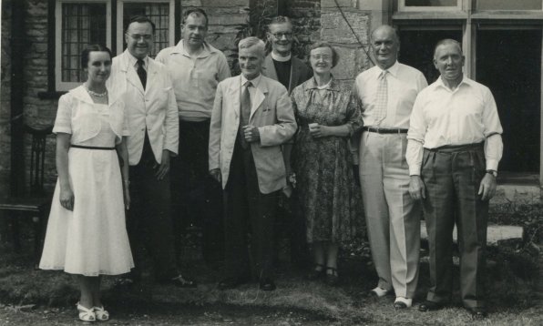 Photograph of a group, taken between 1957 and 1969, photograph amongst church records: left to right: ?. ?, ?, Frederick Gordon Sherwood, Revd Johnson, ?, ?, Reg Coley.