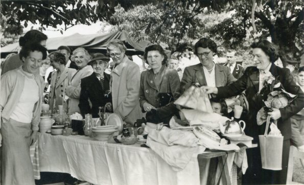 Photograph of a church fete. Written alongside is "Thomas Hancock's 2nd wife, Annie Hancock 2nd left". From the Cook Family Collection.