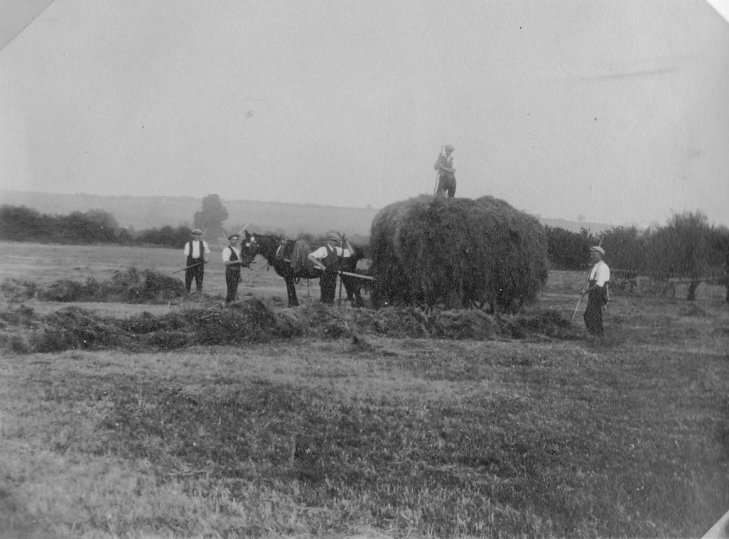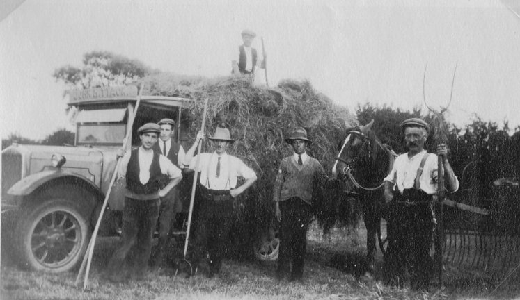 Harvesting during WW1. Written alongside "Wartime Volunteers 1917". From Cook Family Collection.