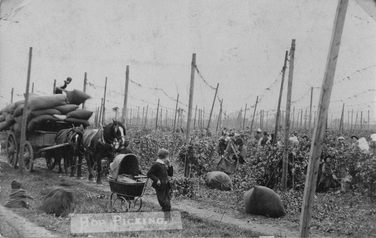 Hop picking. Written alongside is "Hop picking 1905?". From Cook Family Collection.