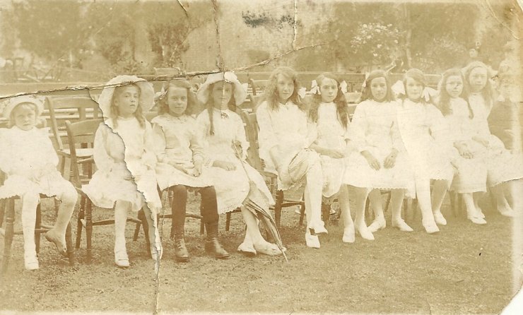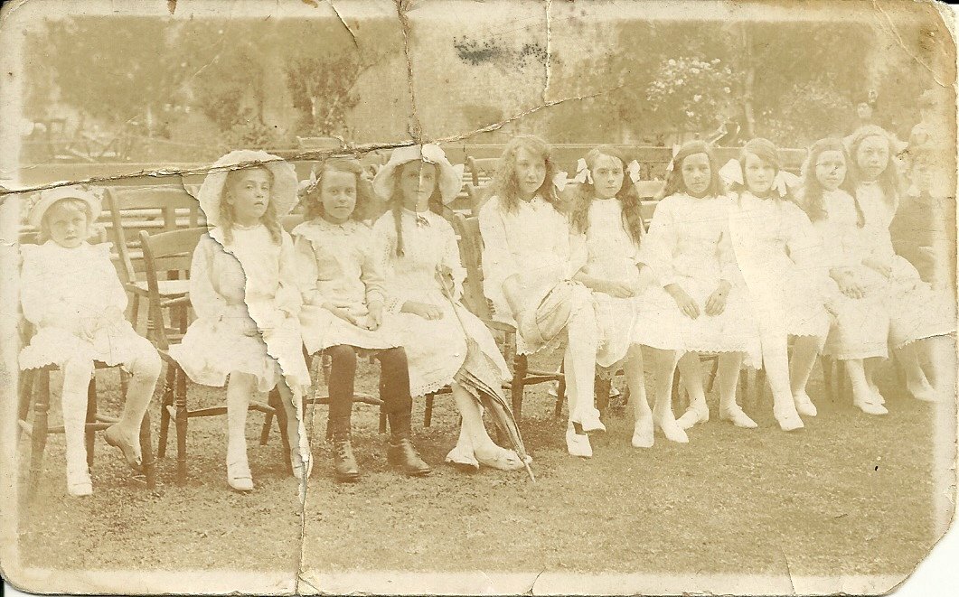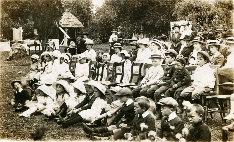 Photograph of mostly children taken in the grounds of the Rectory. From the Shailer Family.