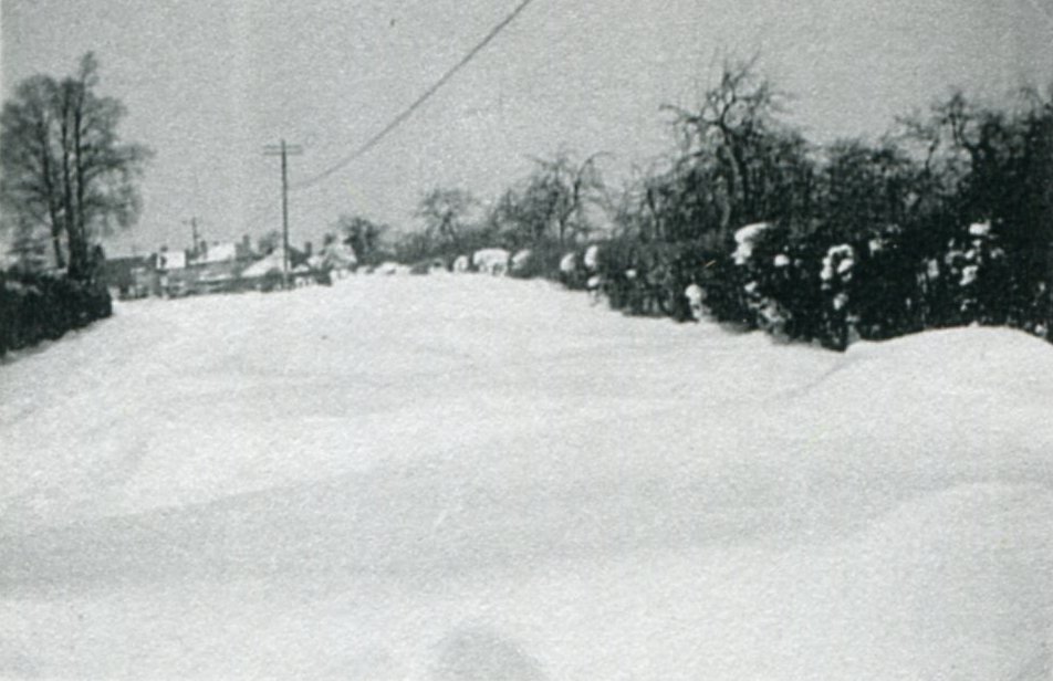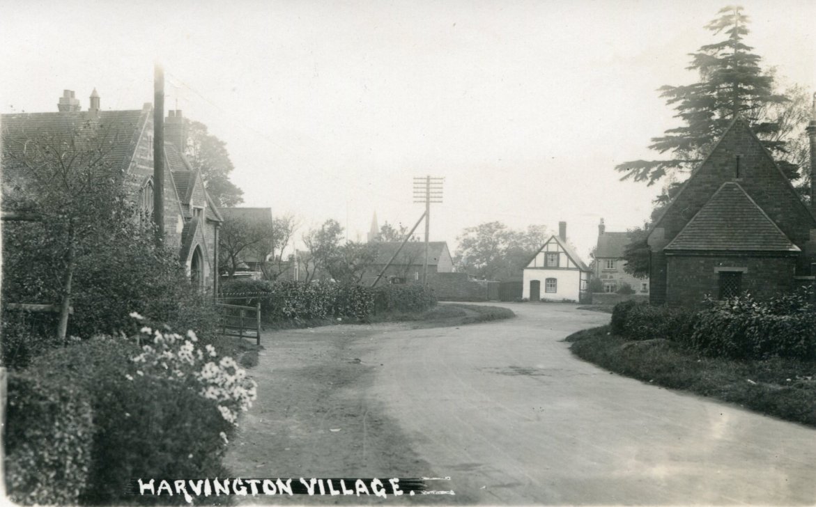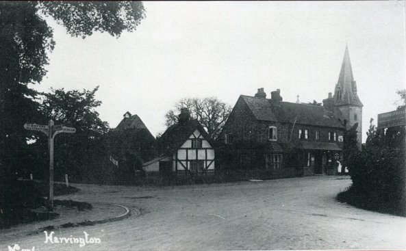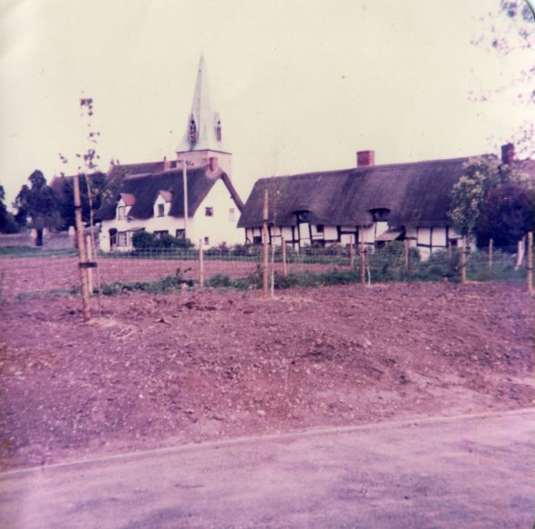 Photograph taken in 1965 from the upstairs of 'The Close' looking south towards the church and the Coach & Horses. Note 'Croftlands' at the top of Anchor Lane on the extreme left. It was built Mr Bromley the village undertaker. The house was demolished in the 1990's to make way for Bromley Close. Photograph extracted from 'The Church & Parish of St James the Great, Harvington' by Jess Fairs and Sue Coley, 2000.
