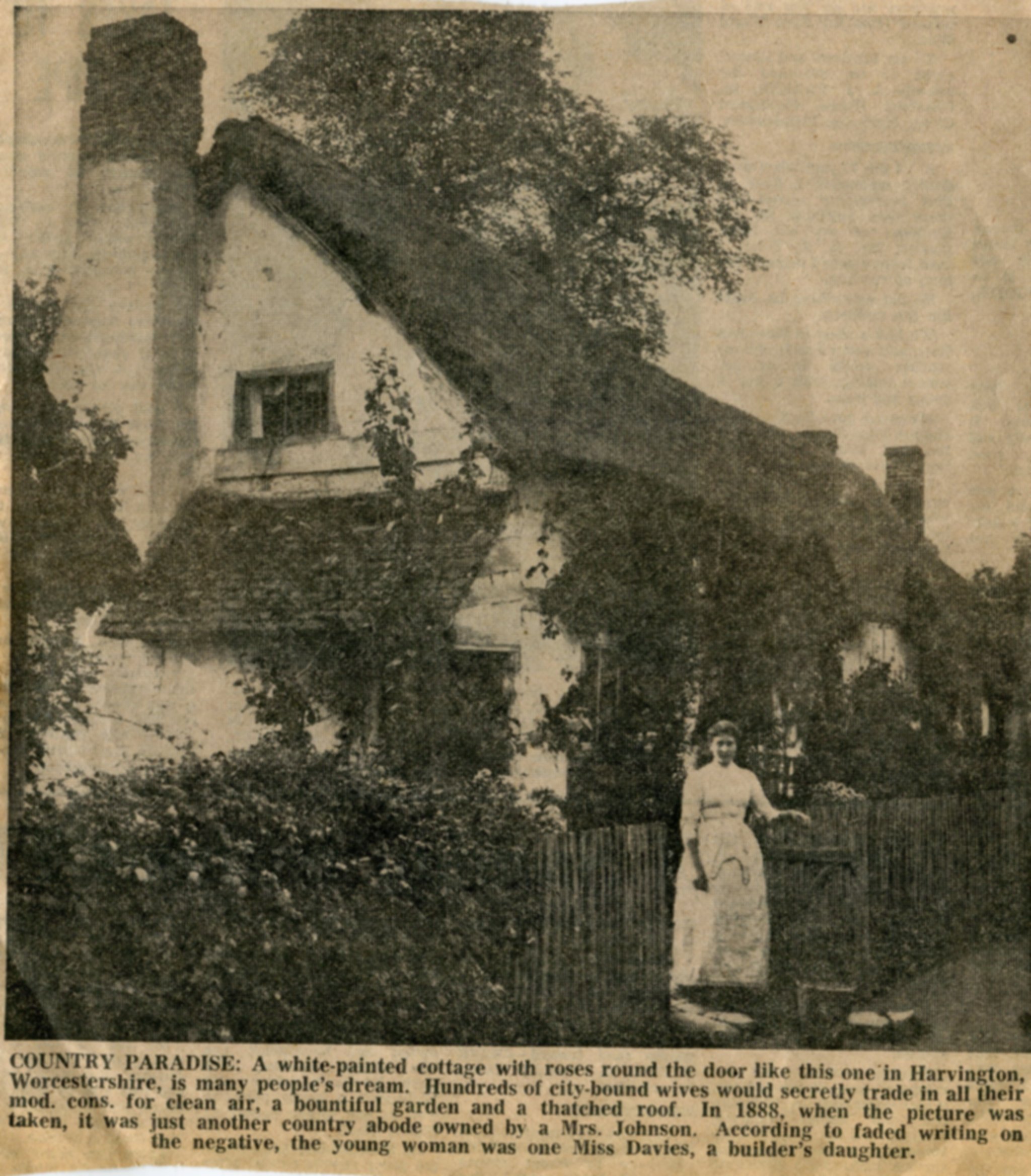 Photograph taken in the garden of the old Shakespeare Inn in Shakespeare Lane. Photograph extracted from The Church & Parish of St James the Great, Harvington by Jess Fairs and Sue Coley, 2000.
