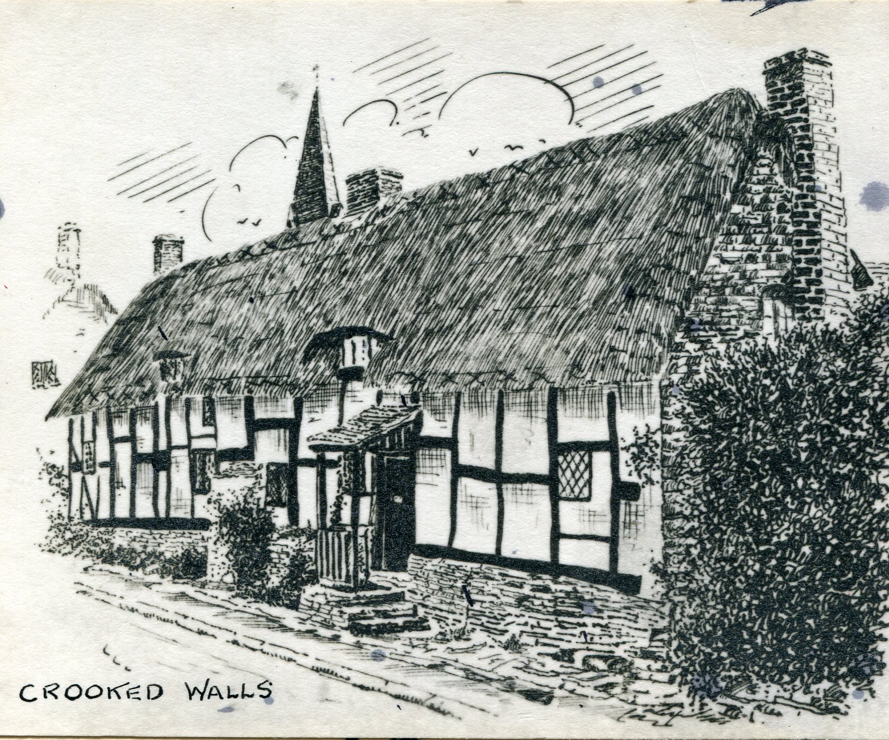 Sketch of Crooked Walls made about 1950 by one of the McClare's, once owners of Crooked Walls. Joy Davies was given a copy by them.