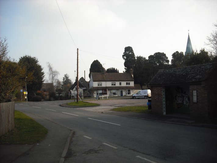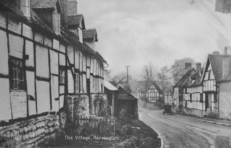 Postcard dating from the early 1930's. Looking down Village to the junction with Stratford Road and Church Street. The main features are the two houses that were demolished by the Council in the 1930's.