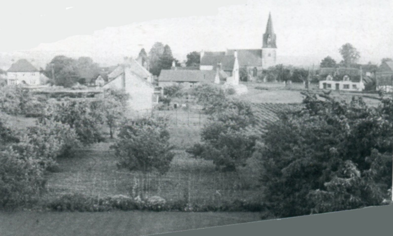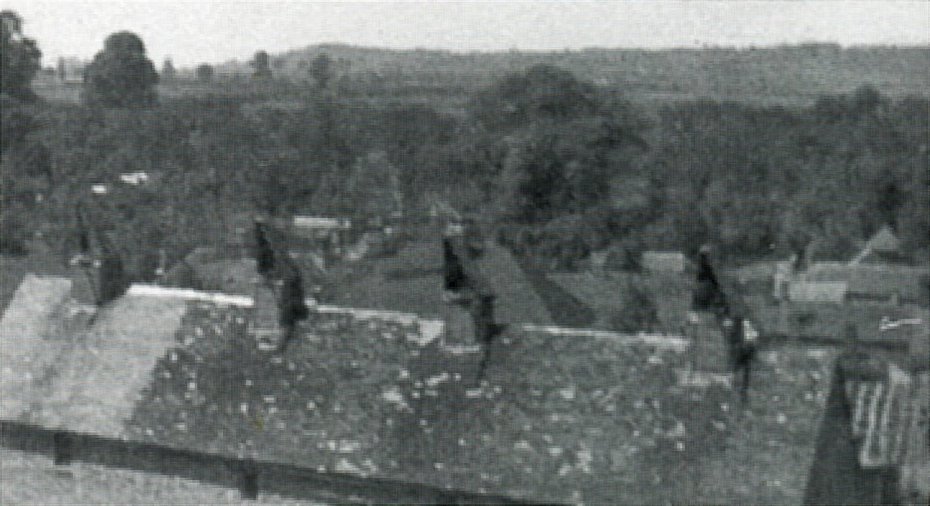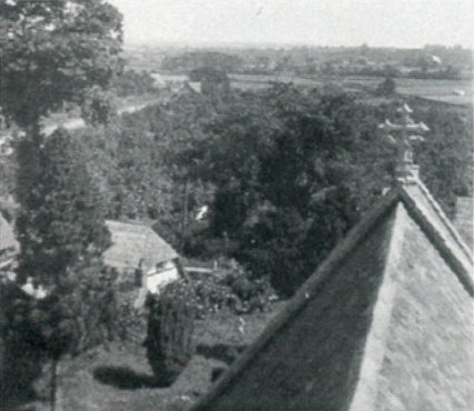 Photograph taken by Bernard Hodgkinson from the church tower looking over south towards and beyond the Shakespeare Inn. Photograph extracted from The Church & Parish of St James the Great, Harvington by Jess Fairs and Sue Coley, 2000.