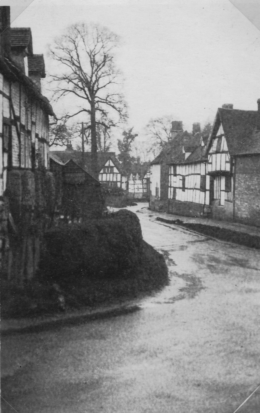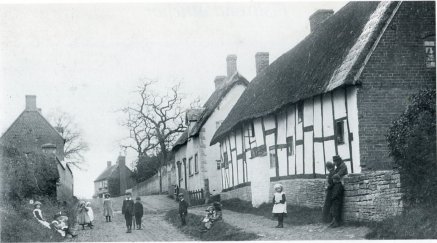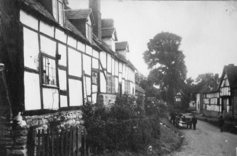 Photograph looking down Church Street. From a publication, below photograph is written: "The village post office is next to one of the oldest "black and white" cottages in the district". From the Cook Family collection.