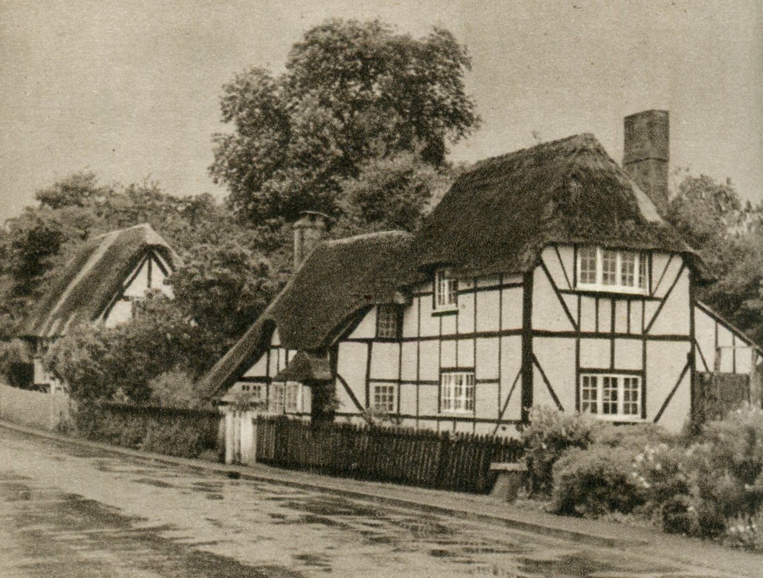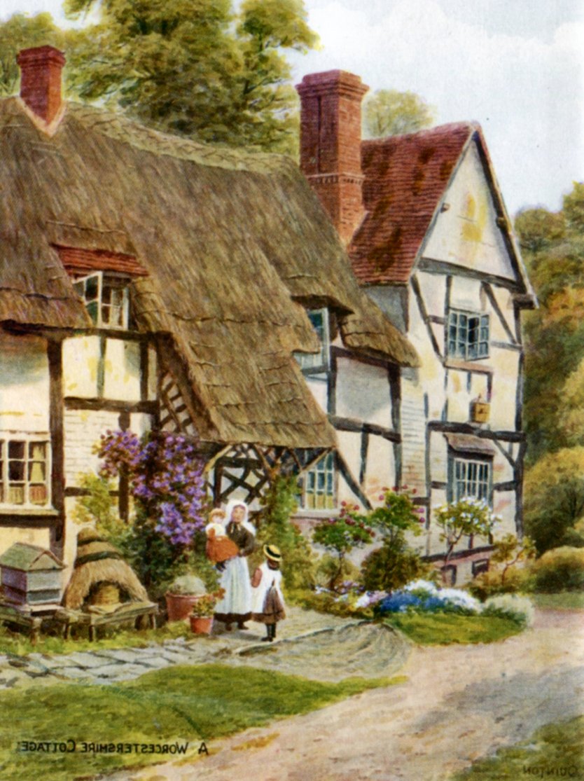 Print depicting Thatchways taken from the Kings England series - Worcestershire, first published in 1938.