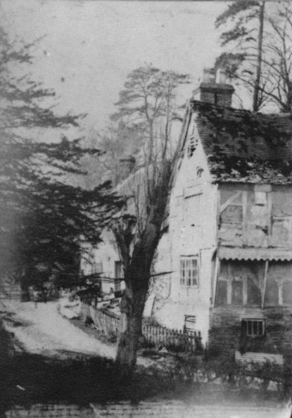 Postcard dated from the early 1930's. Another impression of the two houses demolished in the 1930's. One can see the Hop Kiln with its original roof in the background. On the right is 'The Retreat'.