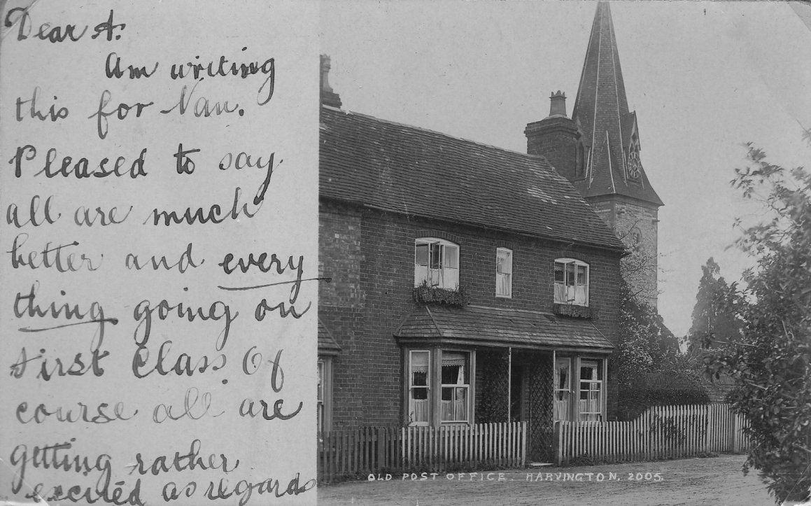 Postcard taken of the old Post Office now Church House. Written alongside is: "1906 Old Post Office S.J. Cook born here in 1910". Postcards from the Cook Family collection.