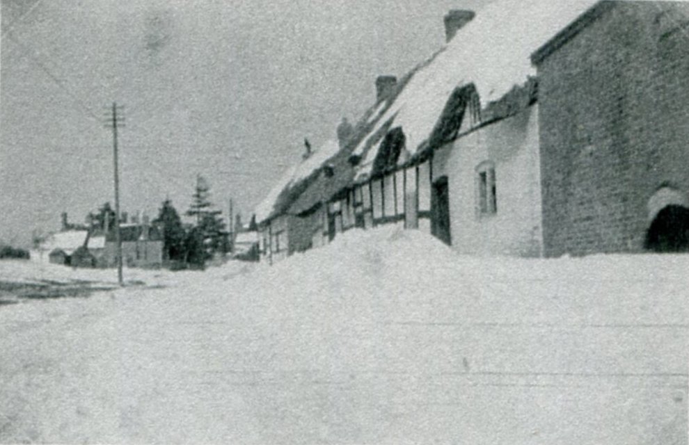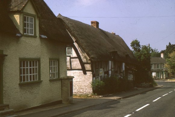 An enlargement of a postcard purchased in 2023. The scene probably dates from the 1930's. The card is looking up Stratford Road towards the junction with Village Street and Church Street. Bank Cottage is the first of the terrace on the left followed by The Malthouse and then the shop.