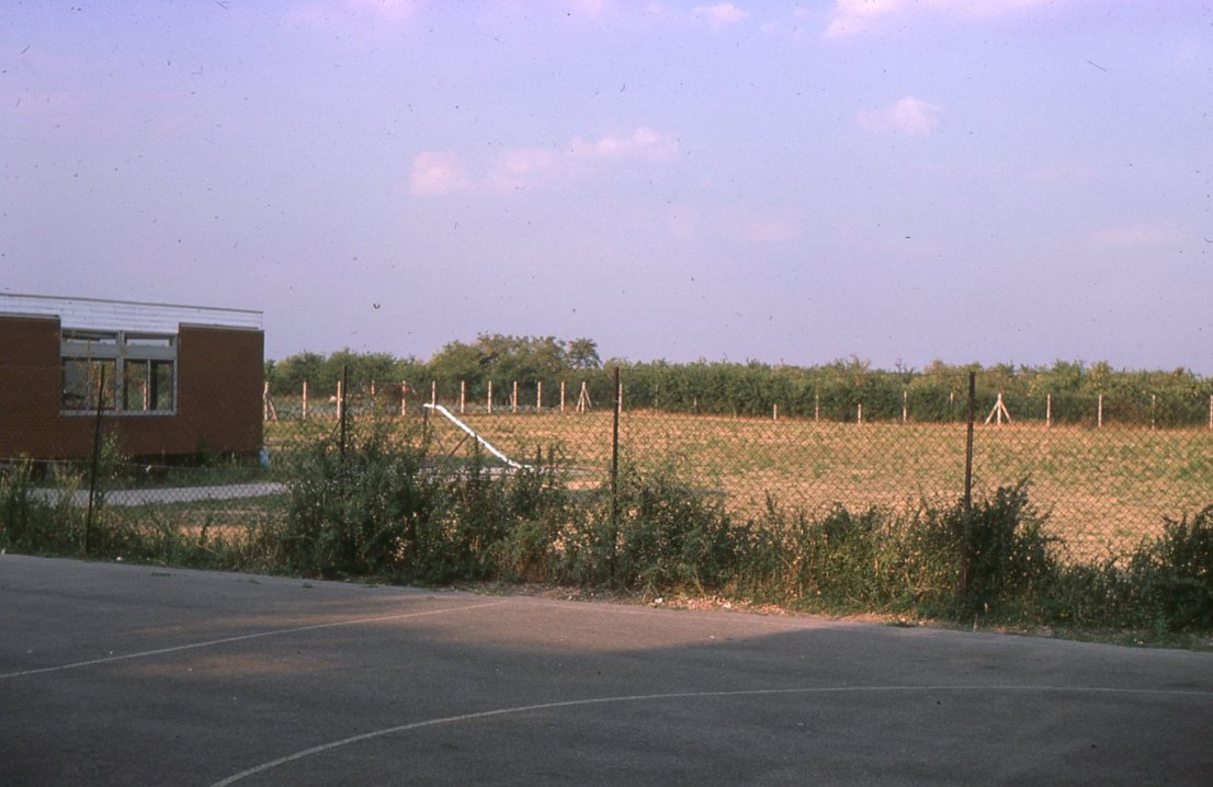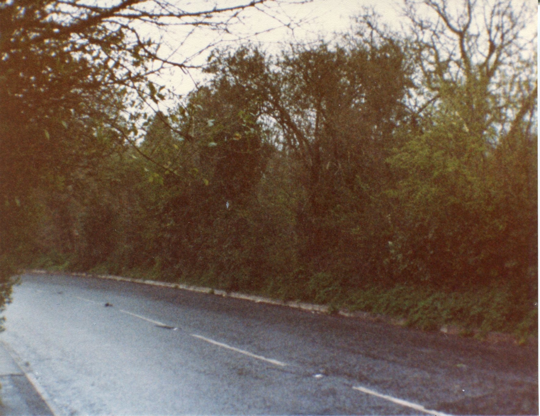 Photograph dated to the early 1980's of the roadside hedge where Walnut Close off Church Street was late built. By Ken and Joy Davies.