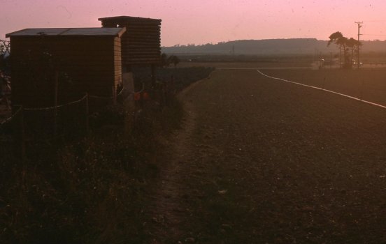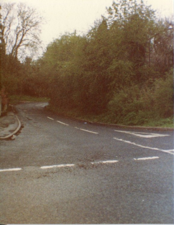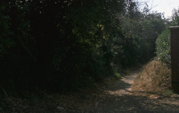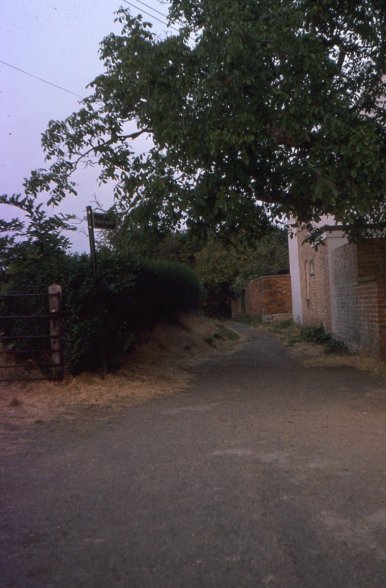 Photograph taken of the lane looking south from the new churchyard in 1976. Photograph by Ken Davies.