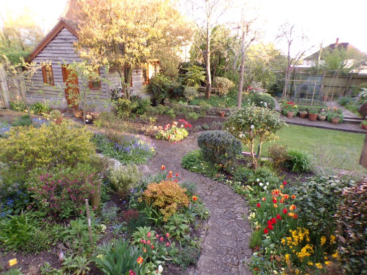 Photograph of the garden of Crooked Walls looking its best taken in 2023.