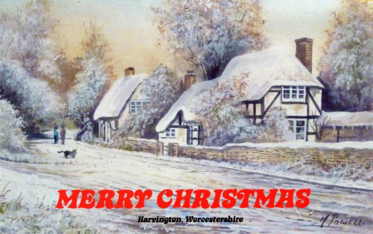 A Christmas card of Harvington by 'Powell'.