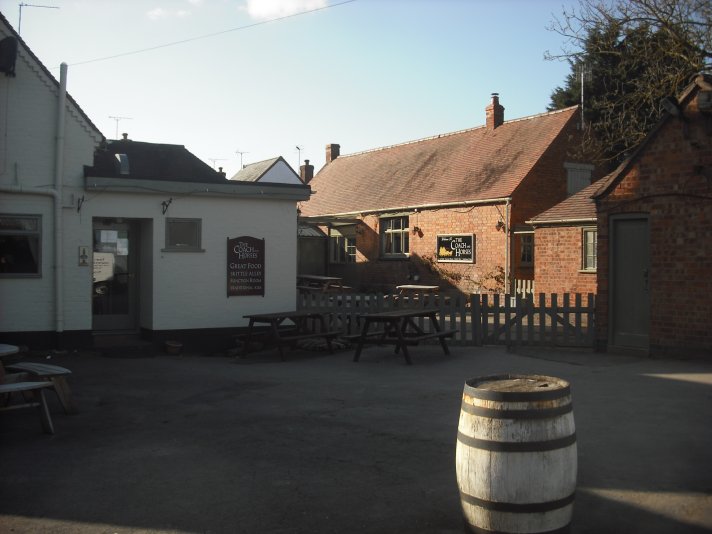Photograph probably dating from the 1950's of the Coach and Horses. Photograph extracted from 'The Church & Parish of St James the Great, Harvington' by Jess Fairs and Sue Coley, 2000.