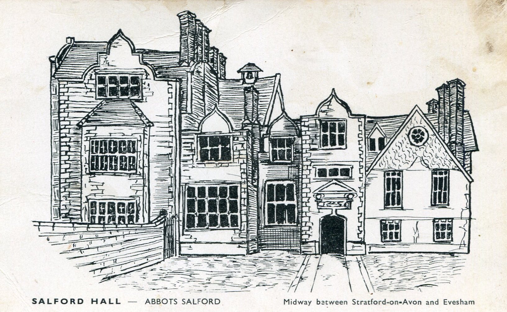 From a publication, below photograph is written: "Motorists on the main Evesham - Stratford pass this fine Tudor period house". From the Cook Family collection.