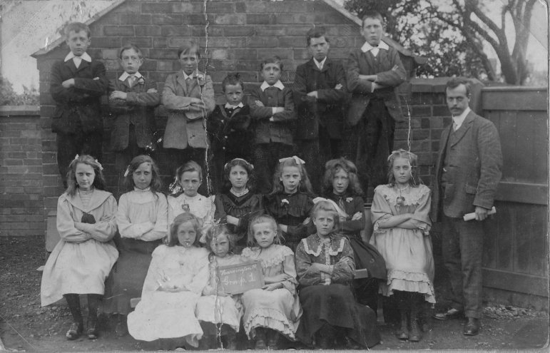 ![]() Written on an attached card, "Harvington School 1902 approx", with Mr Bonne From Cook Family Collection.