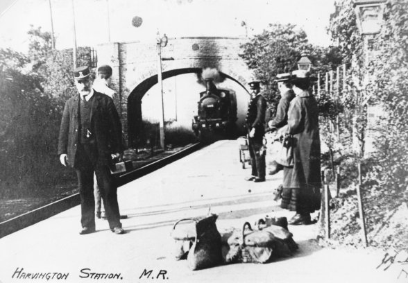 The Midland Railway Company were extending their Birmingham to Redditch line, southwards to Ashchurch near Tewkesbury, and completing the Redditch to Evesham section, they ran their first train through Harvington on 4th May 1868. The line's opening must have been a very special event and attracted villagers to the brand new railway line, bridge and last but not least, station. The Station Master was an important man, especially so for a village like Harvington, where much important trade took place between Harvington and the outside world such as Birmingham - market produce, hops and malt; bread, flour and pin production from the mill. To cater for all this activity, Harvington Station also had a small goods yard and sidings which enabled produce to be loaded. The central figure in all of this was the Station Master. The ten-yearly census returns have been invaluable in giving us a window into the world of Harvington's station masters and their support team such as signalmen, porters, platelayers etc. - all working for the Midland Railway Company. A number of plate layers etc. are mentioned in the records but they have not been listed here. The first mention of a station master at present found is in 1871 when Station House is occupied by Daniel Stapp, Station Master, his wife Amelia and family. Mr Stapp was born in Fishlake, Yorkshire aged 25 and his wife was born in Ashchurch, she was aged 22. In 1877 John Brown was Station Master - recorded by Midland Railway Study Centre. In 1881 the Station Master was still John Brown, born Marston Bygott, Somerset aged 44. He was living in Station House with his sister Frances and a friend. In 1883 Mr Brown was Station Master - recorded by Midland Railway Study Centre. In 1885/7 Mr Morton was Station Master - recorded by Midland Railway Study Centre. In 1888/9 Mr Wallis was Station Master - recorded by Midland Railway Study Centre. By 1891 Edwin Birkenshaw was the Station Master. He was born in Little Eaton, Derbyshire 12th Sep 1863. He and his wife Mary Ann (Annie) lived in Station House for many years. Edwin was Station Master until 1924 and must have been a well-known figure in the village.