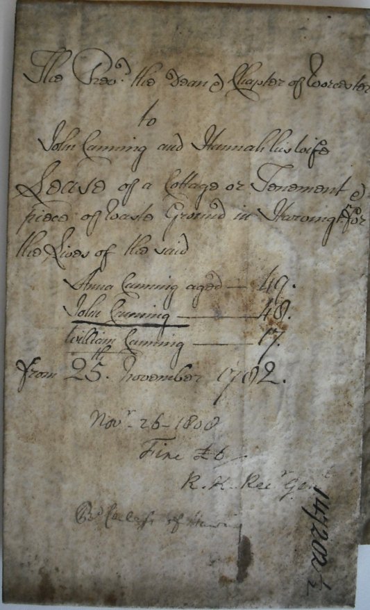 promise and agree to and with the said Dean & Chapter and their successors that they the said John Caning and Anna his wife their heirs and assigns or some or one of them