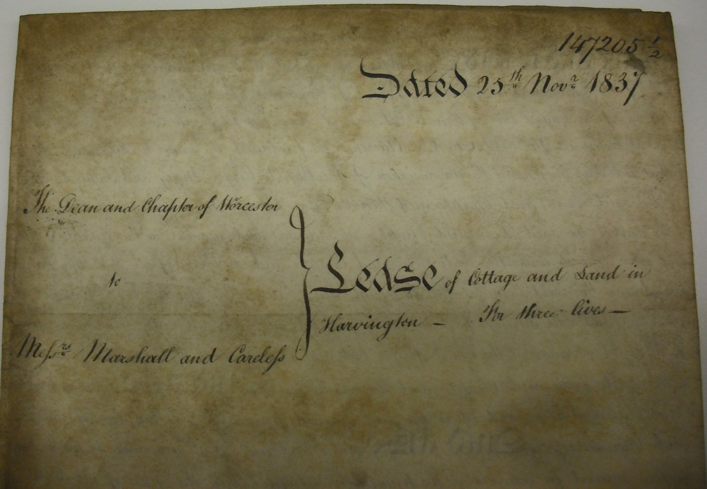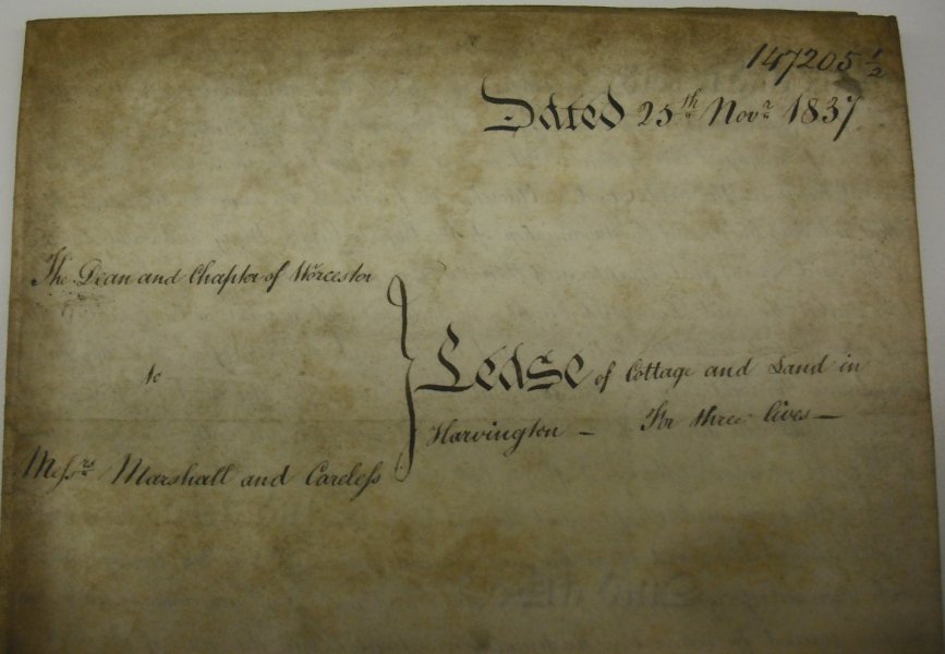 of Worcester and the Chapter of the same Church of the one part and John Marshall of Harvington in the County of Worchester Gentleman and John Careless