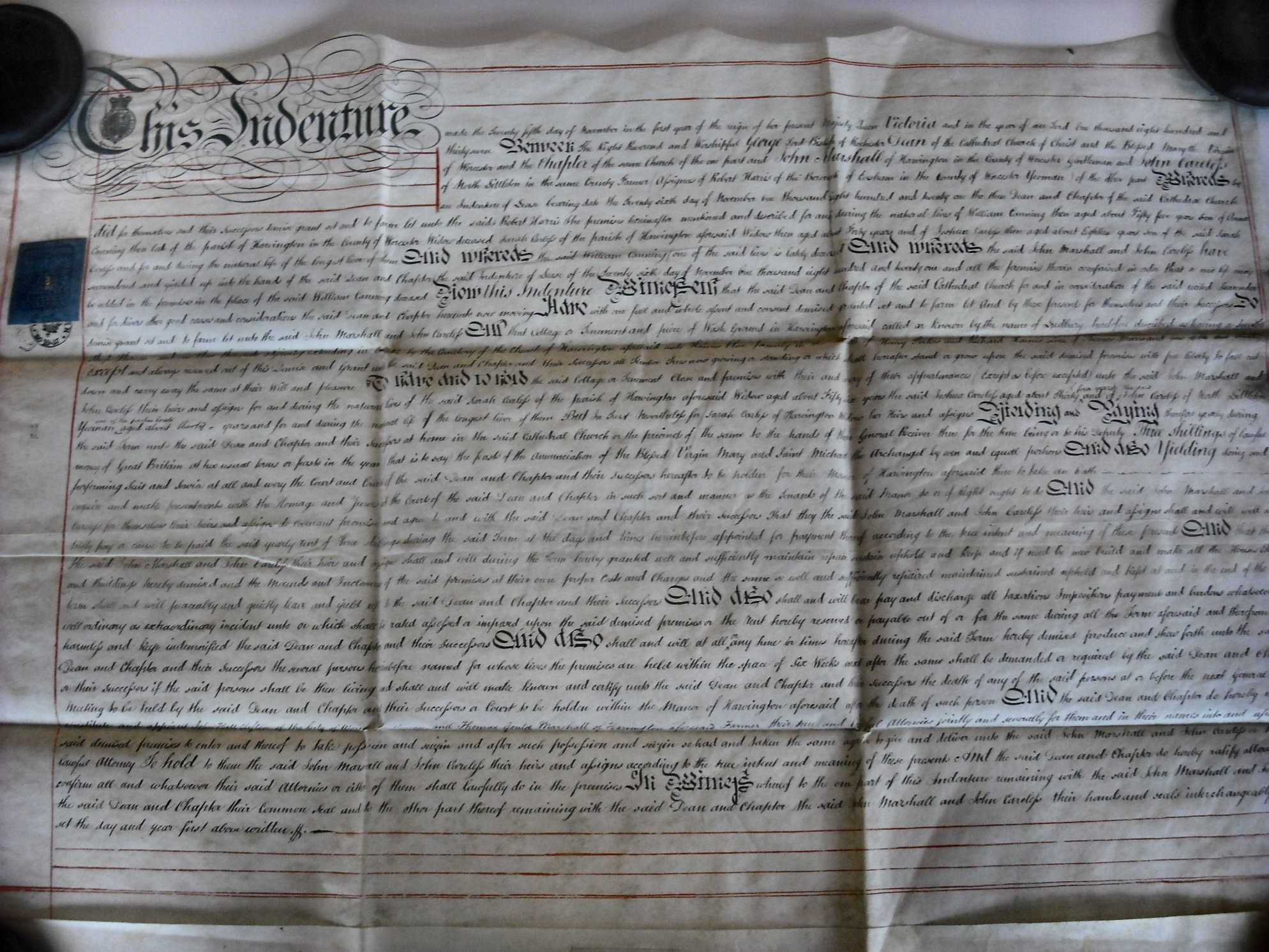 This Indenture made the twenty fifth day of November in the first year of the reign of her present Majesty queen Victoria and in the year of our Lord One thousand eight hundred and